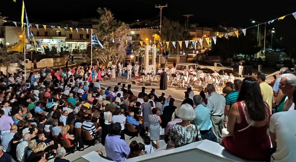 Στη μαρμάρινη εξέδρα τελέστηκε Δέηση και πραγματοποιήθηκε σύντομη ομιλία από τον Σεβασμιώτατο Μητροπολίτη Άρτης, κ. Καλλίνικο, ο οποίος στην ομιλία του σημείωσε, ότι «η Νάξος ομορφαίνει από τα λευκά της εκκλησάκια. Ομορφαίνει από την πίστη στο Χριστό. Ομορφαίνει από αυτή την παράδοση την εκκλησιαστική, την οποία πάντοτε φύλαγε και συνεχίζει να φυλάσσει μέχρι σήμερα».