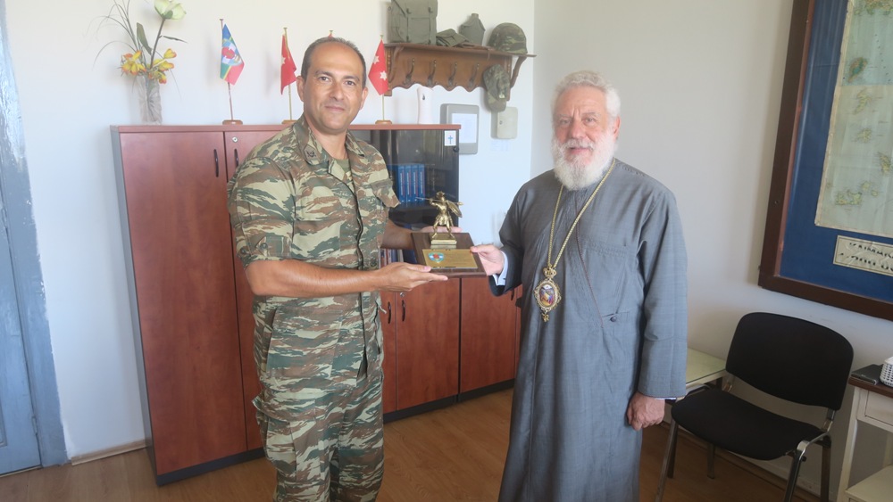 Ο αποχωρών Διοικητής προσέφερε στον Σεβασμιώτατο κ. Δωρόθεο Β’ αναμνηστικό δώρο και του εξέφρασε τις ευχαριστίες του για την πρόσφατη προσφορά ηλεκτρικής κουζίνας στο Τάγμα, η οποία διευκόλυνε κατά πολύ την εκεί διαβίωση των στελεχών και στρατευσίμων.