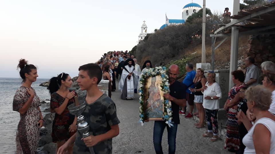 Στο πλαίσιο αυτό, τελέστηκε Μέγας εόρτιος Εσπερινός, μετά το πέρας το οποίου ακολούθησε διάπλους της εικόνας της Παναγίας της "Θαλασσινής" με καΐκι και πλοιάρια, εντός του όρμου του Μέγα Γιαλού, μαγνητίζοντας και φέτος τα βλέμματα των πιστών που παρακολουθούσαν την εντυπωσιακή αυτή λιτάνευση από την παραλία, το δρόμο και το εκκλησάκι, πάνω στο βράχο.