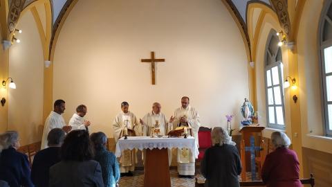 Το Σάββατο το πρωί τελέστηκε η Θεία Λειτουργία στο παρεκκλήσιο της Ιεράς Μονής των Αδελφών του Ελέους και ακολούθησε η επίσκεψη του Καρδιναλίου και της συνοδείας του στους ηλικιωμένους τροφίμους του Ησυχαστηρίου «Παναγία της Ελπίδας».