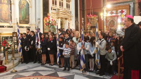 Με ευλάβεια γιόρτασαν οι πιστοί της Σύρου, τον εορτασμό προς τιμήν του πολιούχου του νησιού Αγίου Νικολάου, συμμετέχοντας στη Θεία Λειτουργία και τη λαμπρή λιτάνευση της Ιεράς Εικόνος του Αγίου στο κέντρο της Ερμούπολης.
