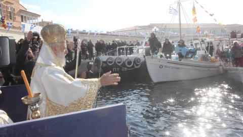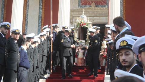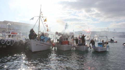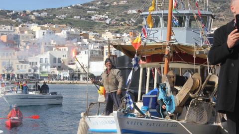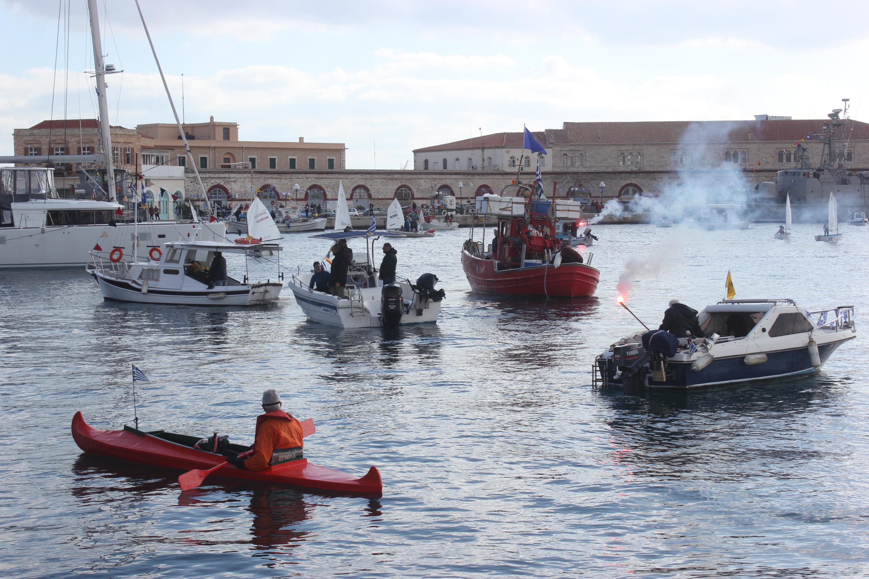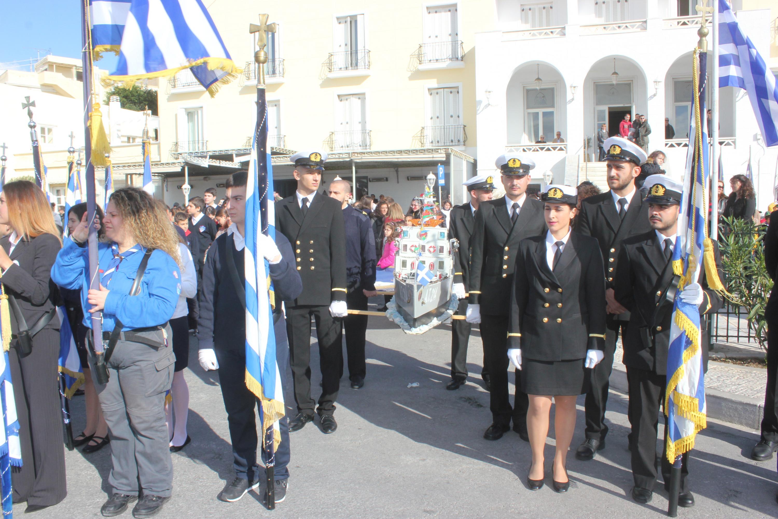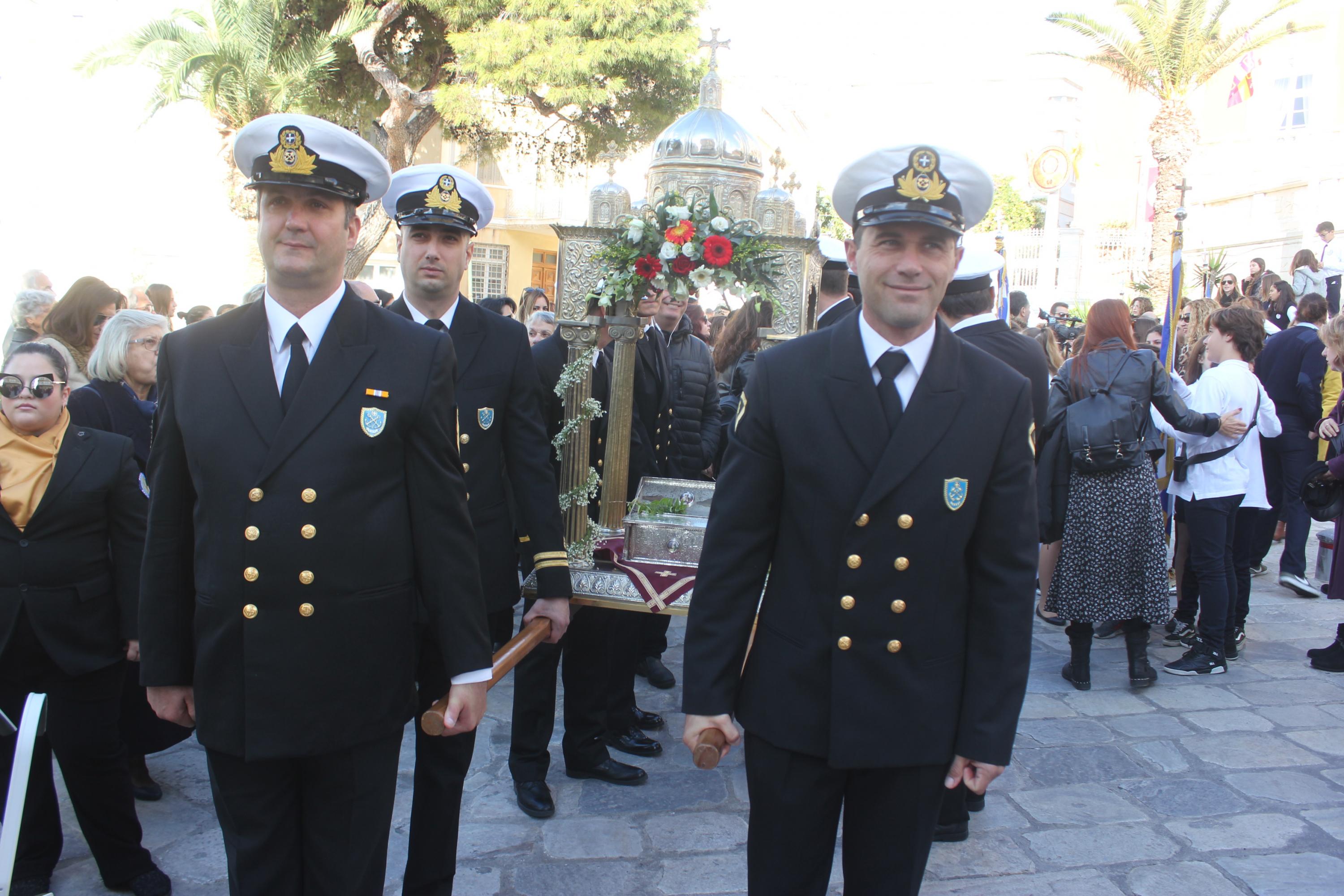 Συγκινητική, όπως κάθε χρονιά, η συμμετοχή στον εορτασμό από θαλάσσης, των πλοίων και πληρωμάτων του Πολεμικού Ναυτικού, του Λιμενικού Σώματος των αλιέων και του Ναυτικού Ομίλου Σύρου, οι οποίοι με τη χρήση φωτοβολίδων δημιούργησαν κλίμα κατάνυξης.