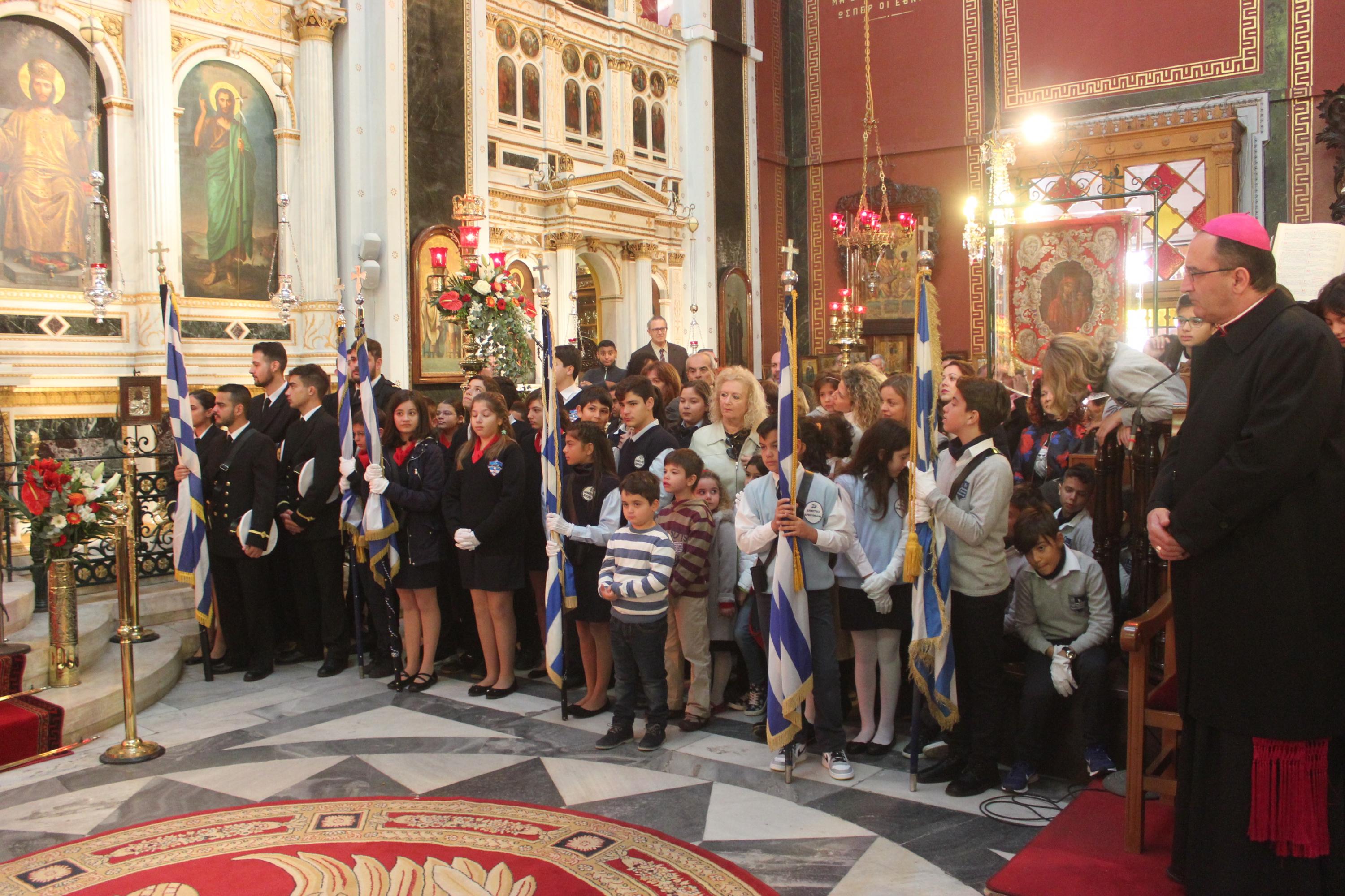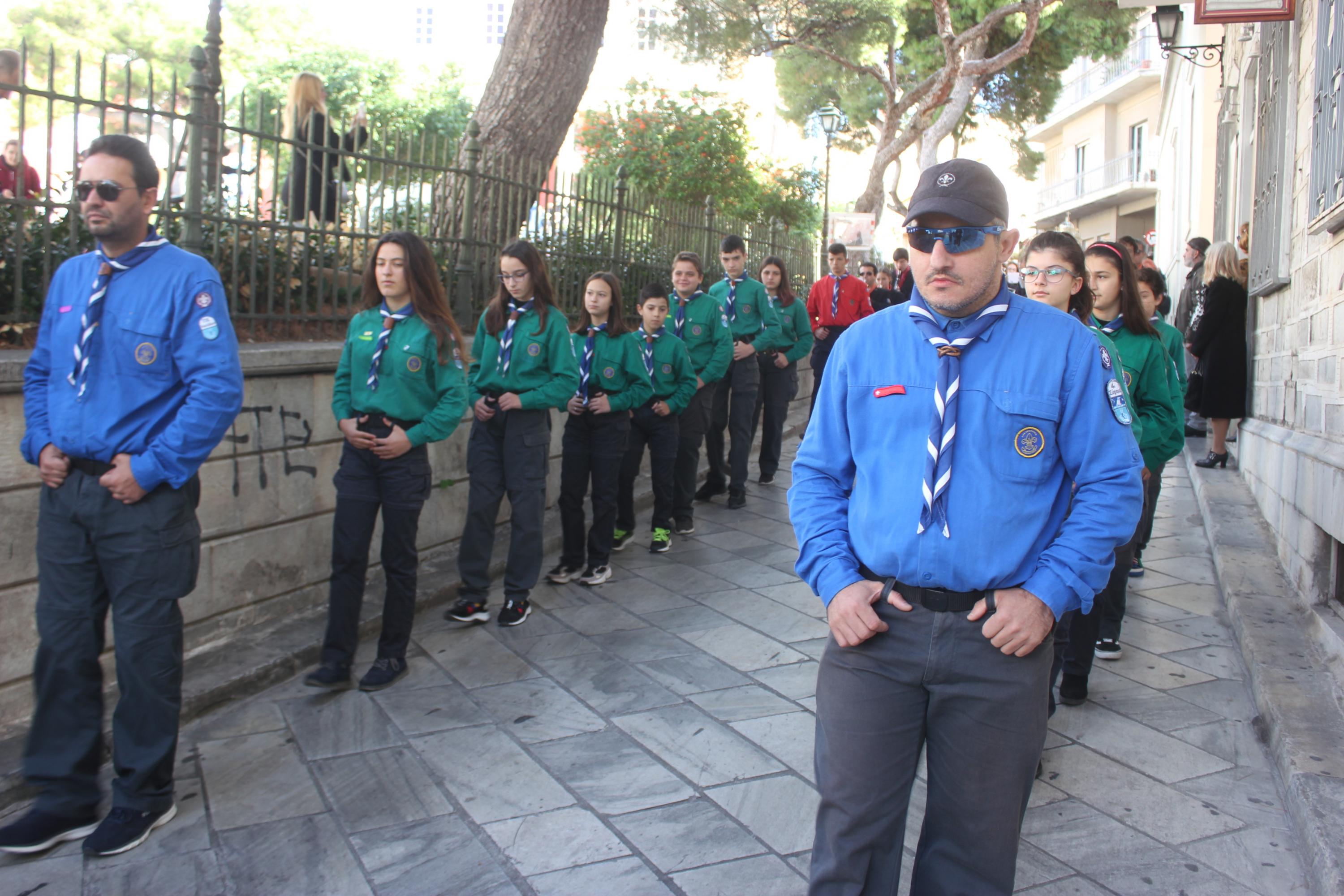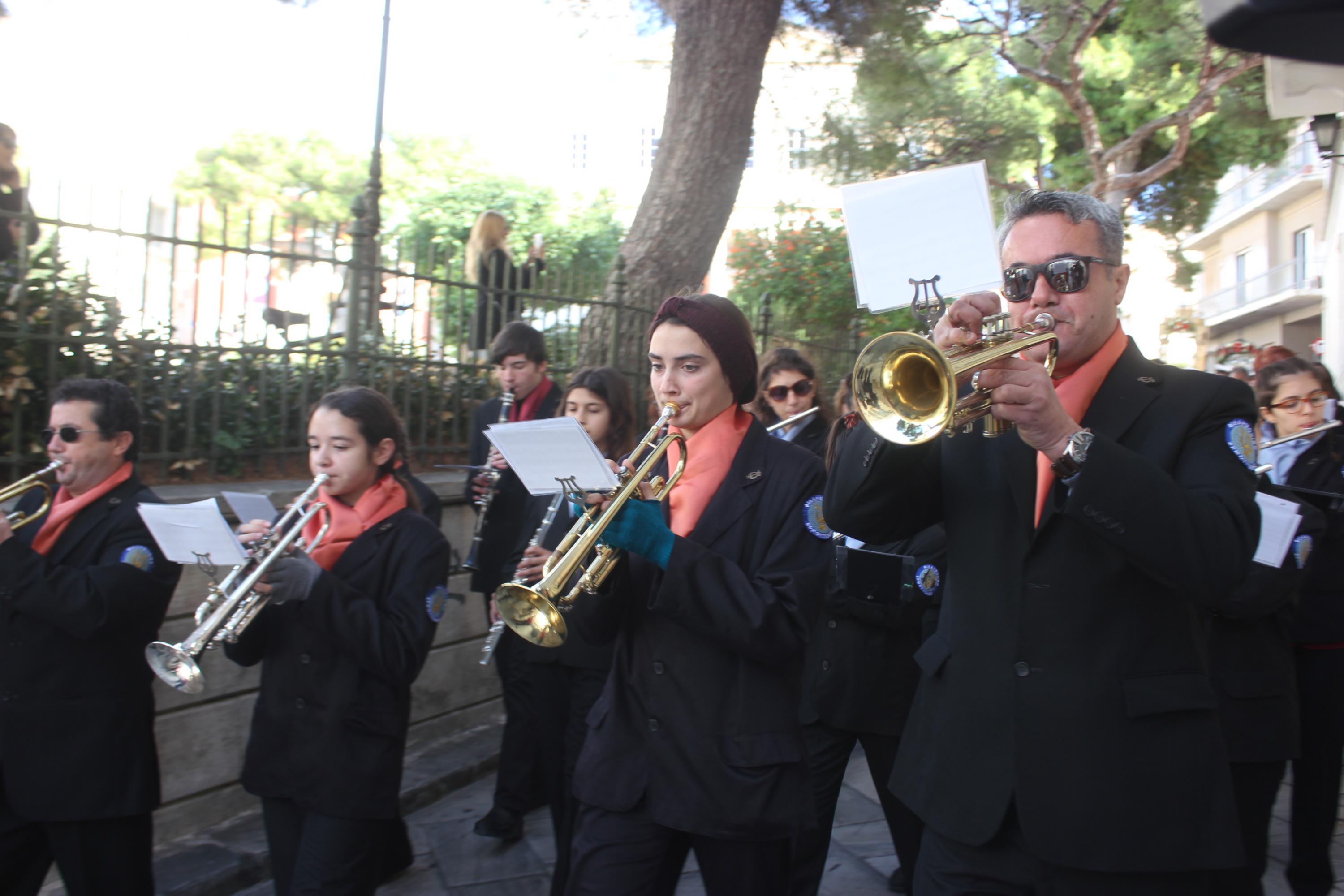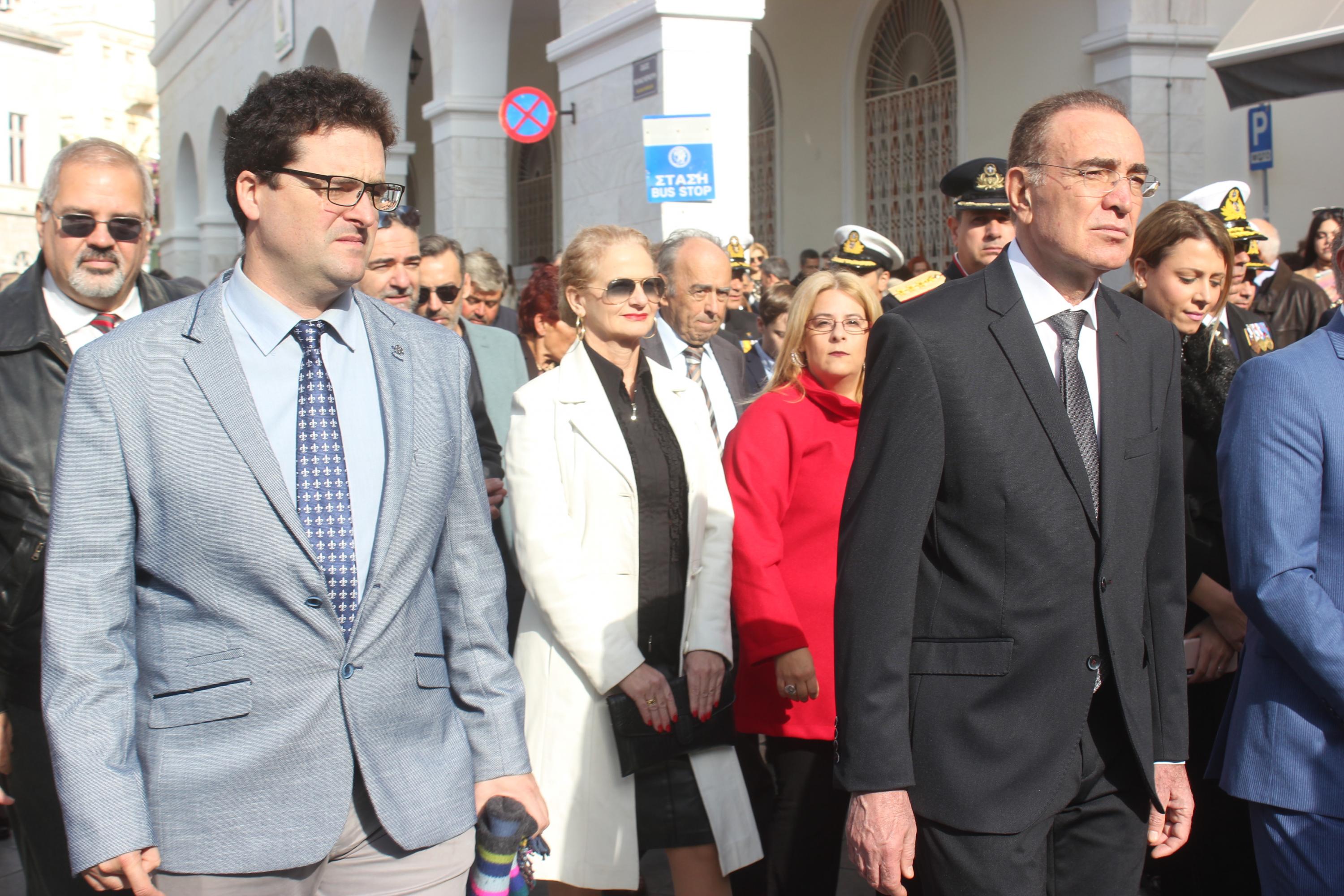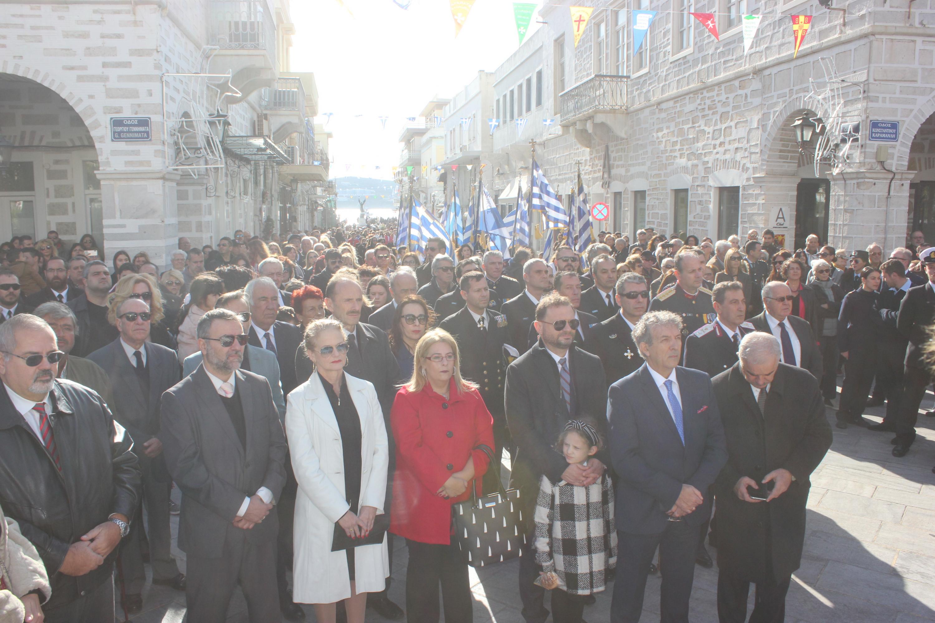 Στη συνέχεια, υπό τα εμβατήρια της Φιλαρμονικής του Δήμου Σύρου – Ερμούπολης, πραγματοποιήθηκε με τη συμμετοχή “θάλασσας” πιστών η πάνδημη λιτανεία της ιεράς Εικόνος του αποτμήματος εκ των τιμίων λειψάνων του Αγίου Νικολάου, στην οποία συμμετείχαν μέλη του Λυκείου Ελληνίδων Σύρου, Σπουδαστές της Ακαδημίας Εμπορικού Ναυτικού Σύρου, αντιπροσωπείες μαθητών με τις σημαίες τους και πρόσκοποι.