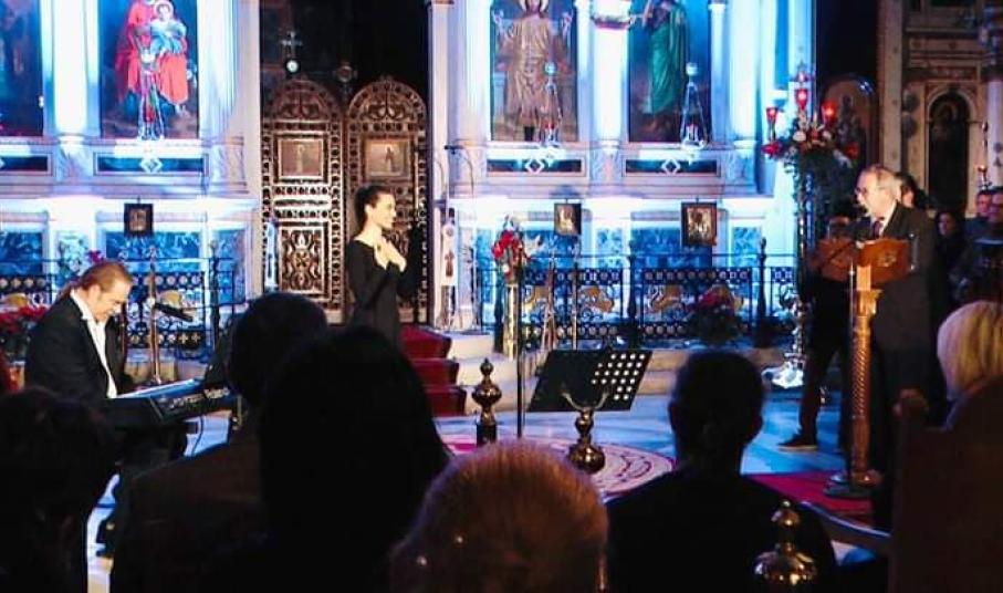 Στην εκδήλωση συμμετείχε η Μικτή Χορωδία του Μουσικού Ομίλου Σύρου και η Ανδρική Χορωδία Αγίου Νικολάου, υπό τη Διεύθυνση του Μαέστρου κ. Ιωάννη Αργυρίου, η οποία απέδωσε Εκκλησιαστικούς ύμνους.