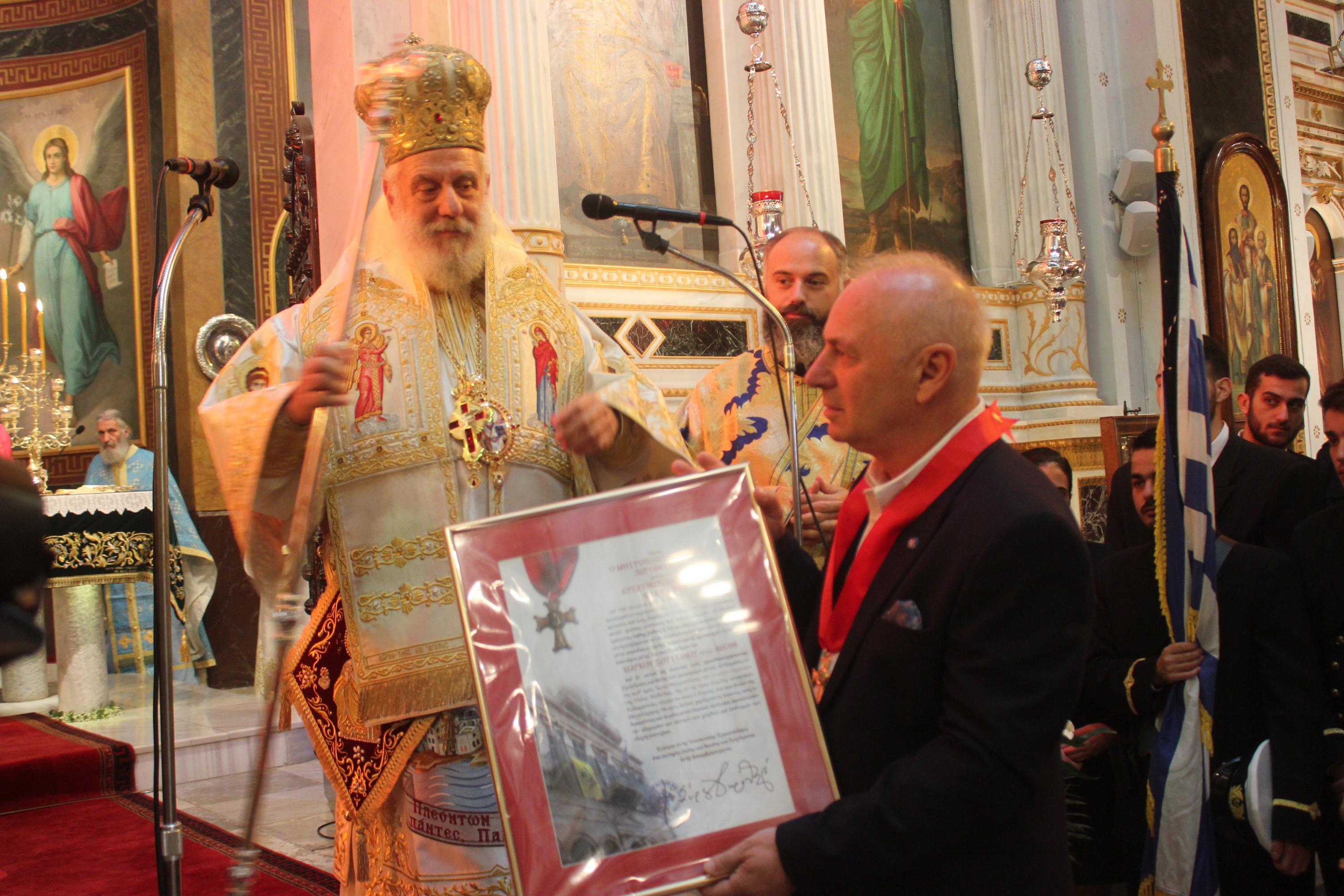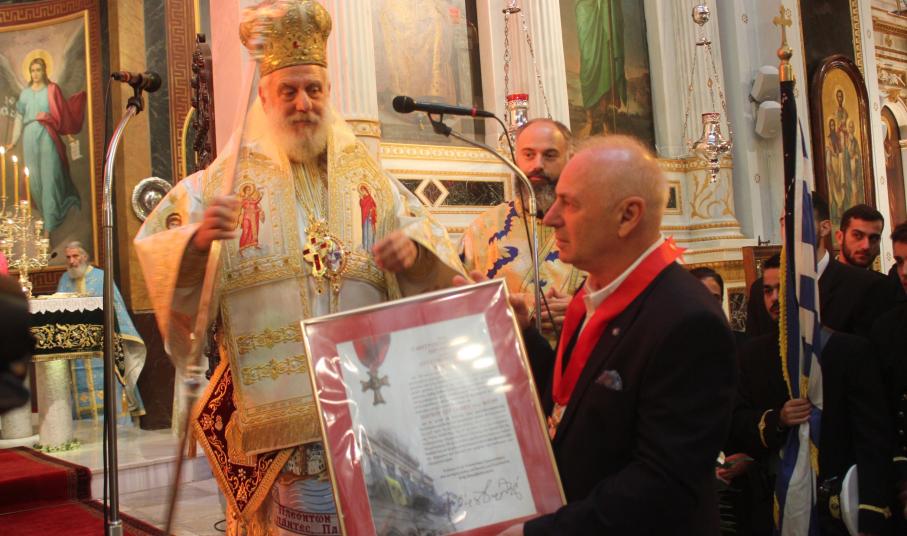 Παραλαμβάνοντας το μετάλλιο, ο κ. Βουτσίνος εξέφρασε την ευγνωμοσύνη των εργαζομένων προς τον Σεβασμιώτατο κ. Δωρόθεο –πνευματικό πατέρα, πυλώνα ασφαλείας και προστασίας για το ποίμνιό του, θρησκευτικό ηγέτη που δεν εφησυχάζει στα εύκολα και δεν κρύβεται στα δύσκολα- για το συνεχές και έμπρακτο ενδιαφέρον του προς αυτούς και τις οικογένειές τους.