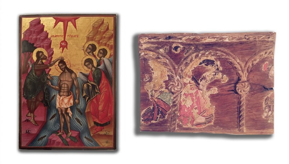 Πρόκειται για εικόνα του 19ου αιώνα, με παράσταση τη Βάπτιση του Χριστού, που είχε κλαπεί μαζί με άλλες έντεκα εικόνες (τρεις δεσποτικές και οκτώ δωδεκαόρτου).