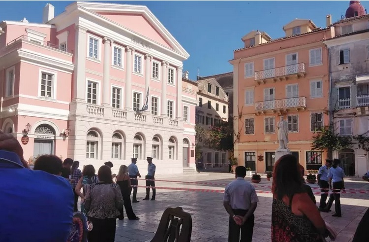 ΚΕΡΚΥΡΑ. Με ισχυρά μέτρα ασφαλείας τελέστηκε το πρωί της 11ης Αυγούστου το Αρχιερατικό Συλλείτουργο και η λιτάνευση του ιερού σκηνώματος του Αγίου Σπυρίδωνος, εντός του ναού.