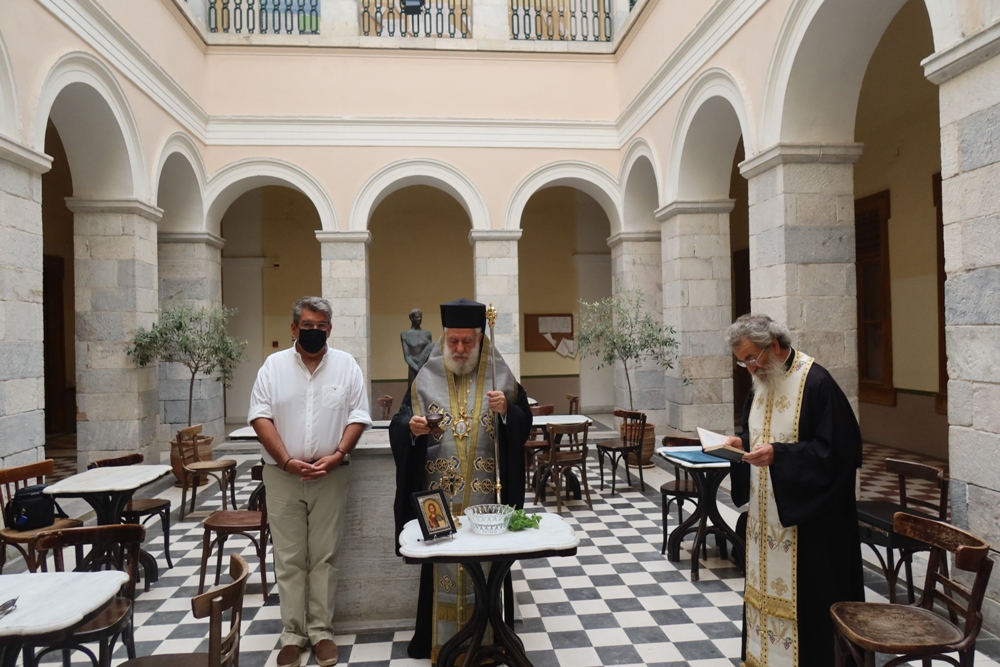 Κατόπιν προσκλήσεως του Δικηγορικού Συλλόγου Σύρου και του νέου Προέδρου του κ. Κωνσταντίνου Φιφλή, ο Σεβασμιώτατος κ. Δωρόθεος Β΄ μετέβη σήμερα το πρωί στο εμβληματικό Δημαρχιακό Μέγαρο Ερμουπόλεως, στις αίθουσες του οποίου στεγάζονται οι Δικαστικές Υπηρεσίες, και τέλεσε στο αίθριό του, σύμφωνα με τα ισχύοντα υγειονομικά πρωτόκολλα, τον Αγιασμό για την έναρξη του νέου Δικαστικού Έτους, ενώπιον Δικαστών, του Προέδρου και Μελών του Δικηγορικού Συλλόγου Σύρου και Δικαστικών Υπαλλήλων.
