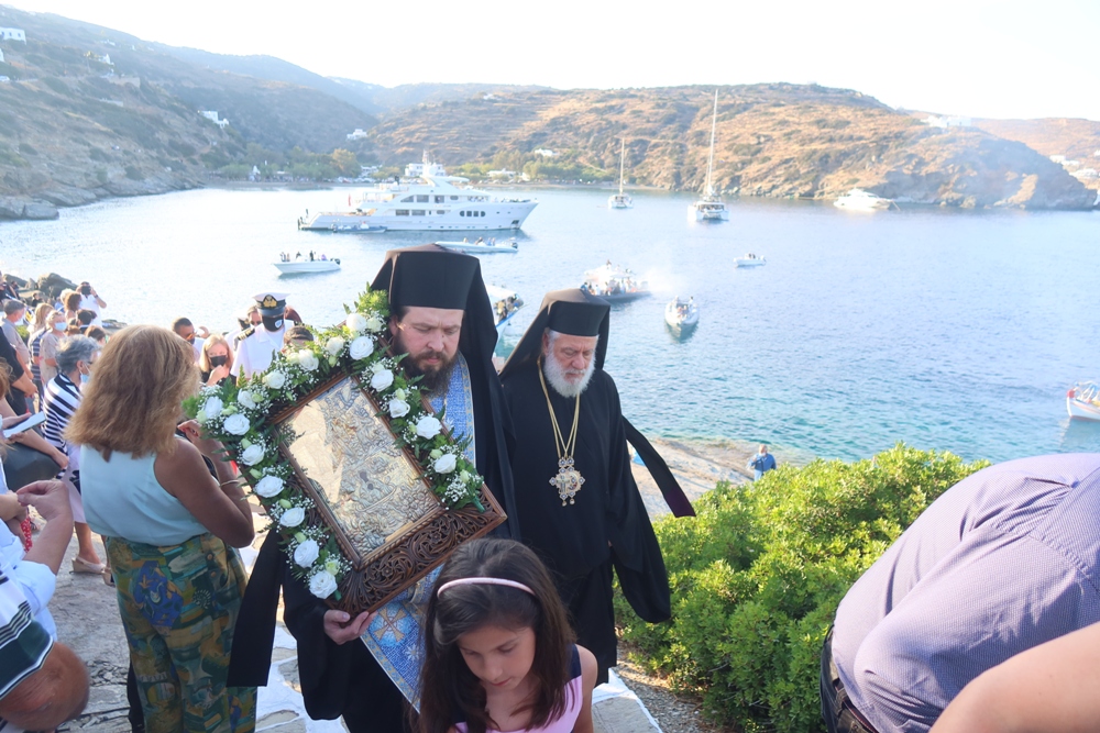 Ο Σεβασμιώτατος Μητροπολίτης Σύρου Δωρόθεος Β’ προέστη του Εόρτιου Εσπερινού της Αναλήψεως του Κυρίου και της αναμνήσεως των θαυμασίων της Παναγίας της Χρυσοπηγής, στο -επί του ομώνυμου ιερού βράχου- ομώνυμο Μοναστηριακό Προσκύνημα στη Σίφνο με τη συμμετοχή του Ηγουμένου της Ιεράς Μονής Βρύσεως, του Ηγουμένου της Ιεράς Μονής Τουρλιανής Μυκόνου και των Εφημερίων του νησιού.