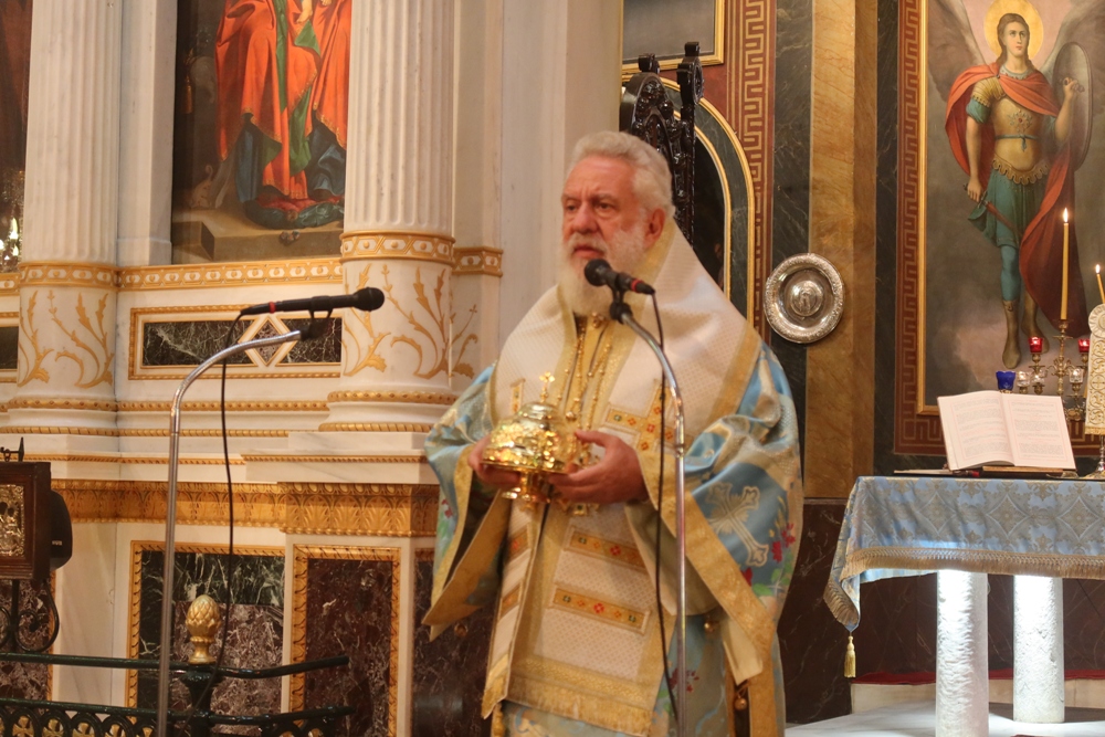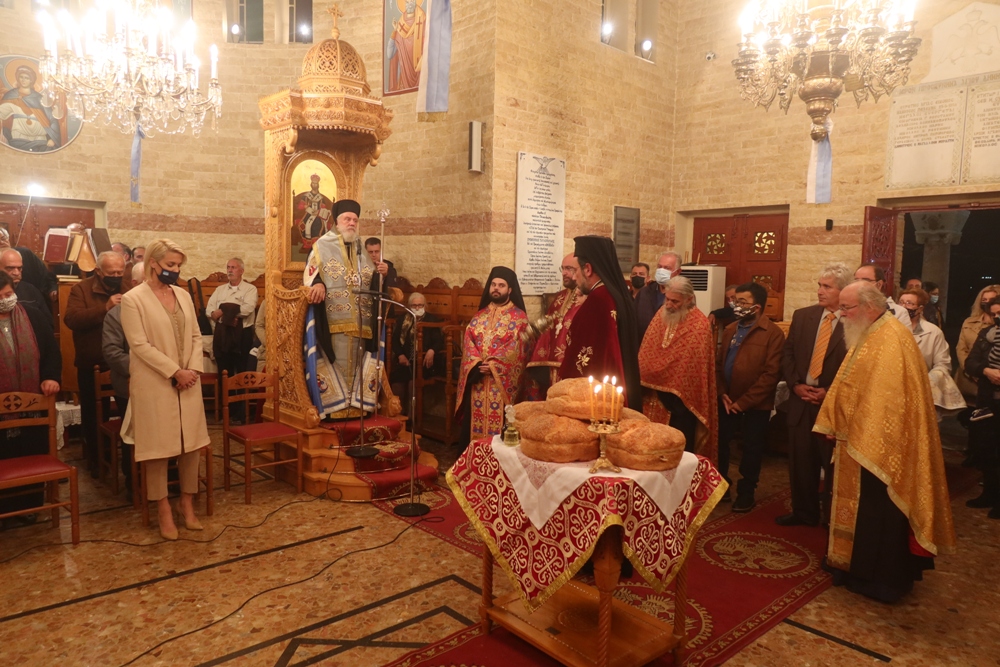 Τέλος, ευχαρίστησε και συνεχάρη τους Εφημερίους του Ναού, Αρχιμ. Βενέδικτο Φραγκογιάννη και Οικονόμο Λουκά Βασάλο, για την προετοιμασία και τον ευπρεπισμό της πανηγύρεως, τους Επιτρόπους, τους Ιεροψάλτες, τους Ιεροψάλτες και τους διακονητές και ευχήθηκε σε όσους και όσες εορτάζουν.