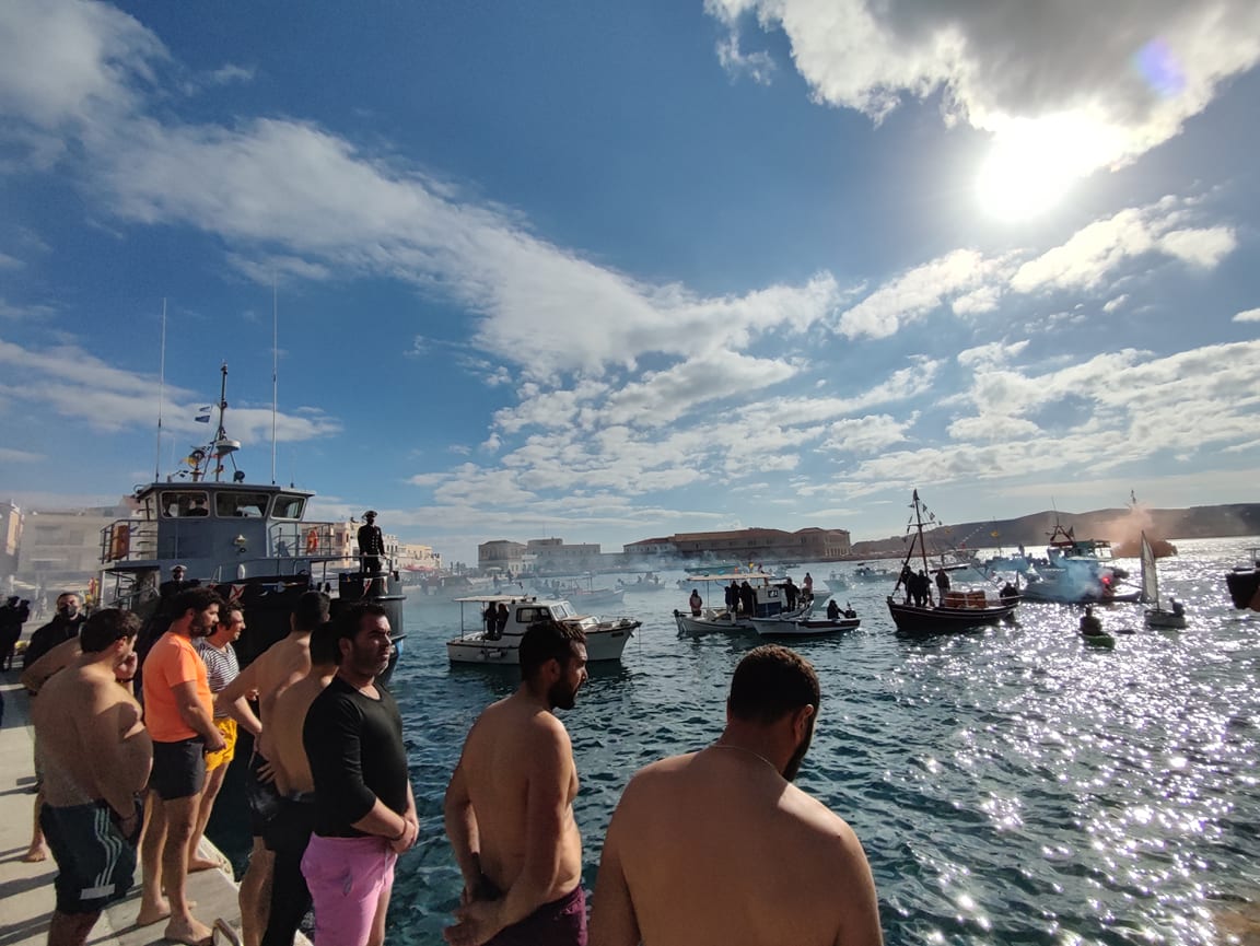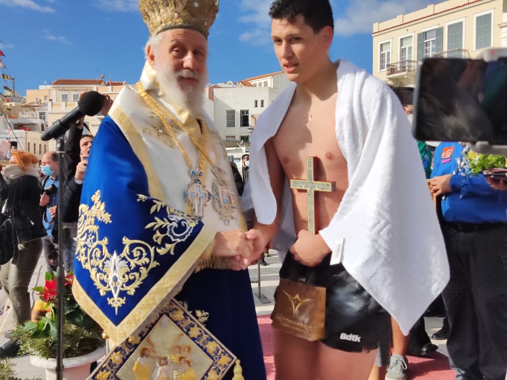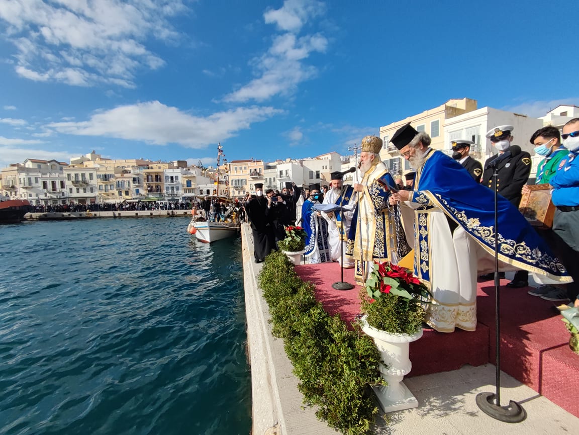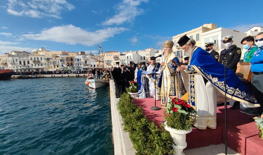 Με τη συμμετοχή πιστών στη λιτανευτική πομπή με επικεφαλής τον Σεβασμιώτατο Μητροπολίτη Σύρου, κ. Δωρόθεο Β΄ και την τήρηση υγειονομικών μέτρων εντός του Μητροπολιτικού ναού Μεταμορφώσεως του Σωτήρος στην Ερμούπολη εορτάστηκαν φέτος τα Θεοφάνεια στη Σύρο, με την κορύφωση της θρησκευτικής εκδήλωσης να έλαβε χώρα στο λιμάνι της πόλης, όπου και τελέστηκε ο αγιασμός των υδάτων και έγινε η ρίψη του σταυρού.