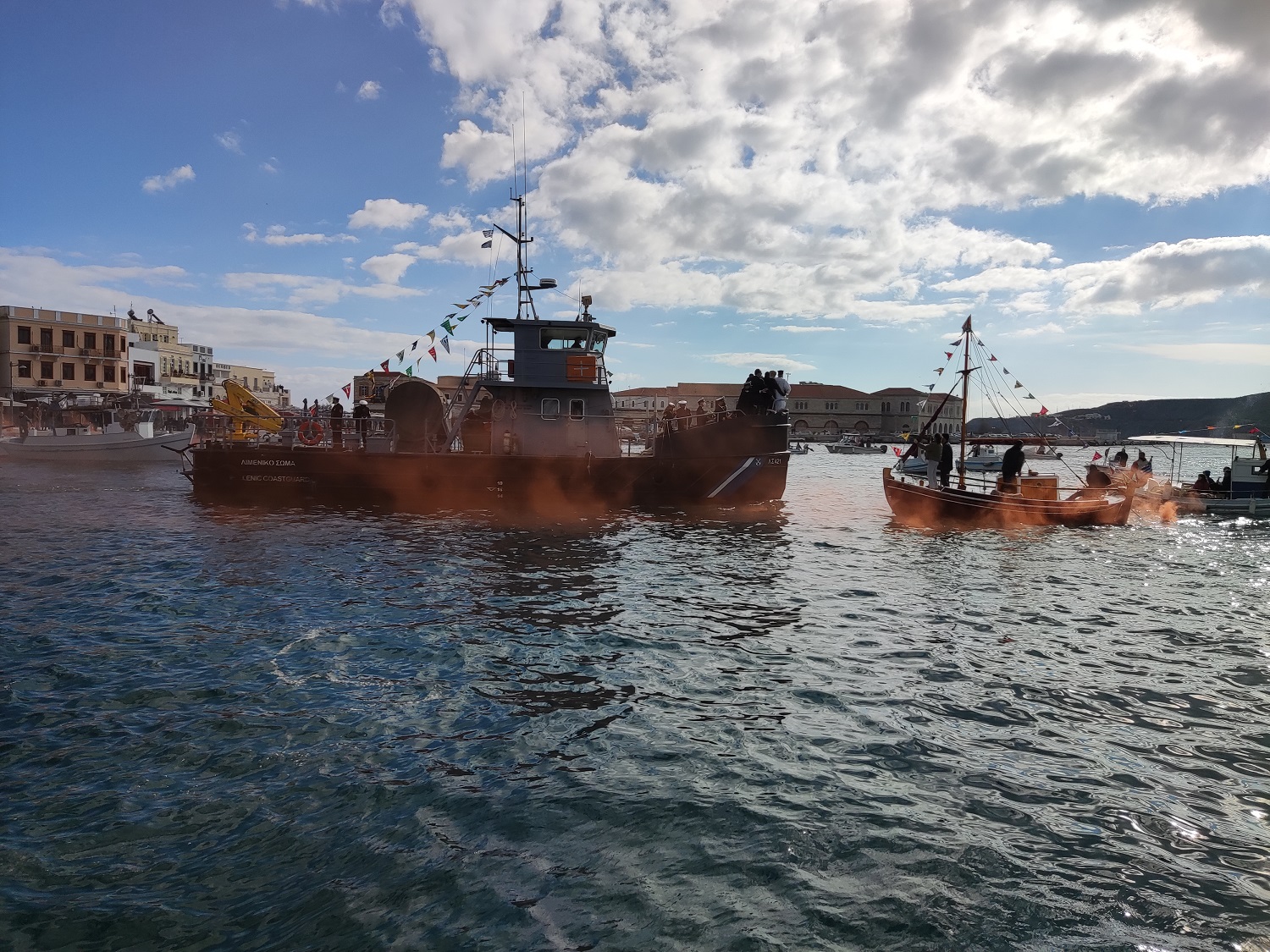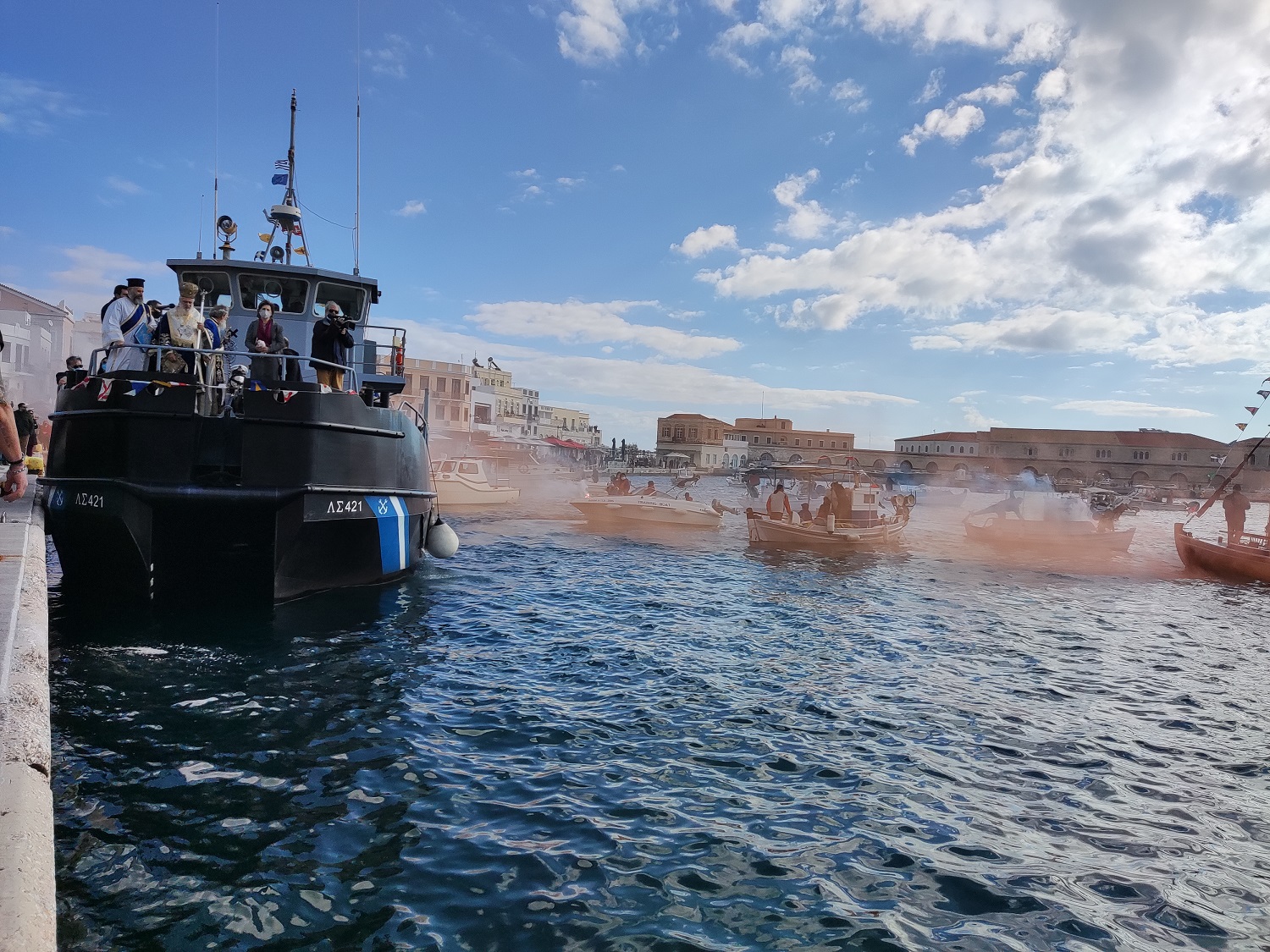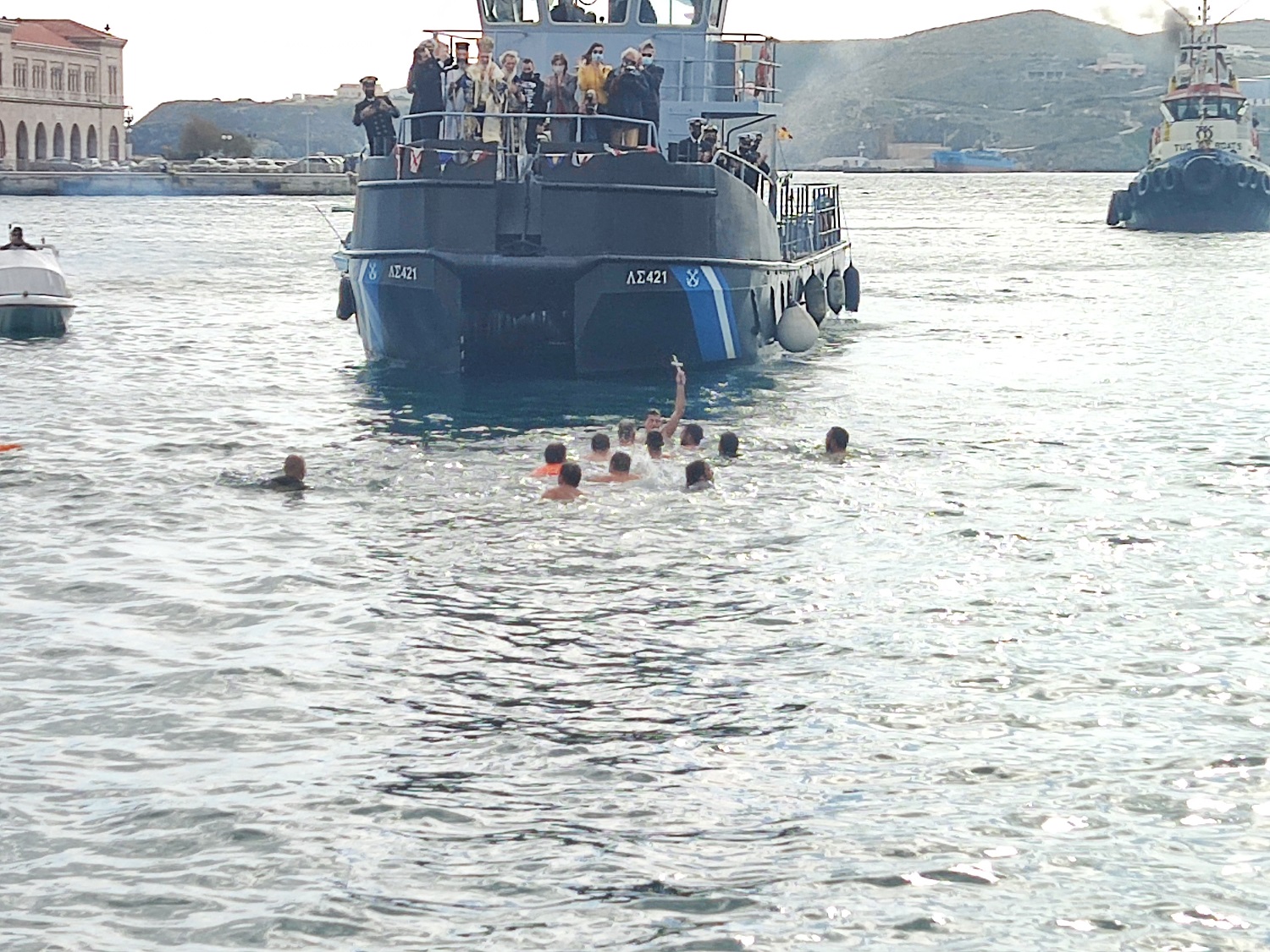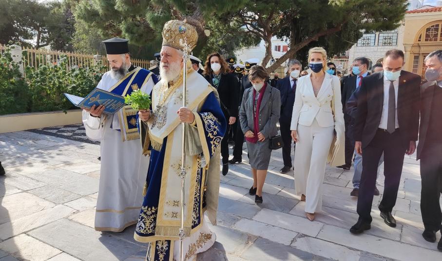 Με μήνυμα αισιοδοξίας, ο Σεβασμιώτατος Μητροπολίτης Σύρου, κ. Δωρόθεος Β’, τέλεσε στο λιμάνι της Ερμούπολης, από σκάφος του Λιμενικού Σώματος, τον καθαγιασμό των υδάτων, ενώ αρκετοί ήταν οι εκπρόσωποι της πολιτείας, της αυτοδιοίκησης, τοπικών φορέων και πιστοί, που, τηρώντας τα μέτρα προστασίας κατά της διάδοσης της πανδημίας, βρέθηκαν, τόσο στον Ι.Μ.Ν. Μεταμορφώσεως του Σωτήρος, όσο και στο λιμάνι, ώστε να παρακολουθήσουν την τελετή.