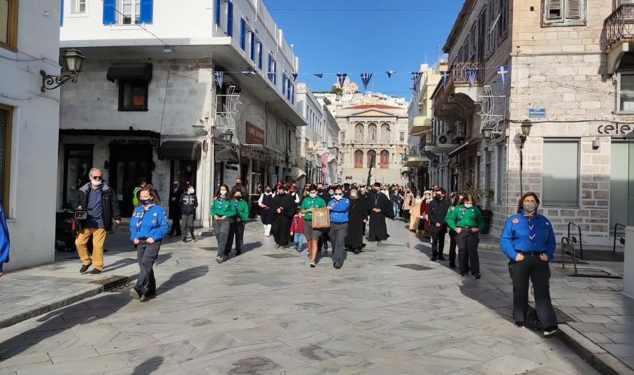 Κλείνοντας τον χαιρετισμό του, ο Μητροπολίτης Σύρου ευχήθηκε σε όλο το λαό της Σύρας, «χρόνια πολλά κι ευλογημένα με υγεία, όλοι μαζί, σε ένα μικρό τόπο σαν αυτόν, σαν μία οικογένεια, να είμαστε ενωμένοι και αγαπημένοι. Τίποτε να μη μας χωρίζει, για να πορευθούμε και να αναδεικνύουμε πάντοτε αυτή την πόλη με τη δόξα και την αξία που της έδωσαν οι πατέρες μας, αυτή τη δόξα που της αξίζει».