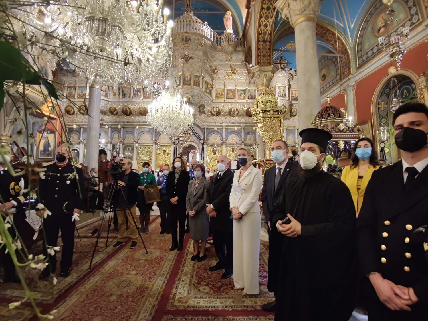 Παρόντες στον ναό, ήταν εκ μέρους της πολιτείας η Γενική Γραμματέας Αγροτικής Ανάπτυξης και τροφίμων, κ. Χριστιάννα Καλογήρου, η διατελέσασα Γ.Γ. Τουριστικής Πολιτικής & Ανάπτυξης, κ. Βίκυ Λοΐζου, η βουλευτής Κυκλάδων της Ν.Δ., κ. Κατερίνα Μονογυιού, ο Αντιπεριφερειάρχης Μεταφορών και Επικοινωνιών, κ. Μάρκος Δαδάος, ο Δήμαρχος Σύρου – Ερμούπολης, κ. Νίκος Λειβαδάρας, ο Εισαγγελέας Εφετών Αιγαίου, ο Διοικητής της Ακαδημίας Εμπορικού Ναυτικού, καθώς επίσης εκπρόσωποι των Σωμάτων Ασφαλείας, του δικαστικού σώματος, της εκπαίδευσης και της αυτοδιοίκησης.