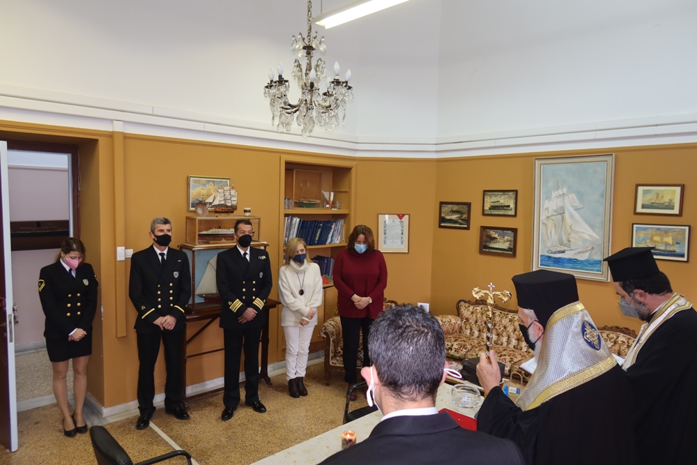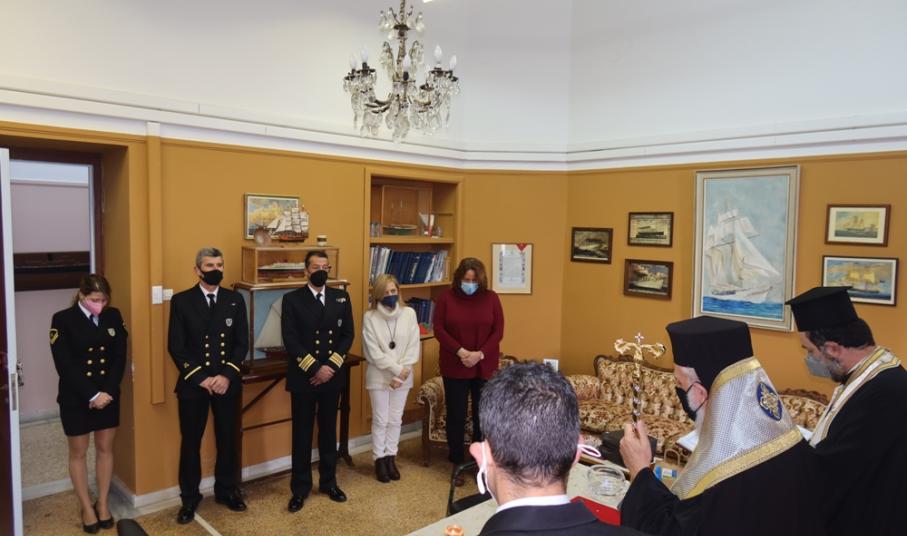 Κατόπιν προσκλήσεως του Διοικητού της Ακαδημίας Εμπορικού Ναυτικού Σύρου, Πλοιάρχου κ.Παναγιώτη Καραμίτσα, και με την παρουσία του Λιμενάρχη Σύρου κ. Ιω. Βαμβακούση, του Διευθυντού Σπουδών, των Καθηγητών και των Υπαλλήλων της Σχολής, ο Σεβασμιώτατος κ. Δωρόθεος Β΄, συνοδευόμενος από τον Εφημέριο του Ιερού Ναού Αγίου Νικολάου Ερμουπόλεως, Αρχιμ. Βενἐδικτο Φραγκογιάννη ευλόγησε βασιλειόπιτες, διαδοχικά, στο Γραφείο του Διοικητού και στις τρεις Τάξεις των Μαθητών, προς αποφυγή συνωστισμού στη μεγάλη Αίθουσα Εκδηλώσεων της Σχολής, ευχαρίστησε και συνεχάρη το Διοικητή και τους Εκπαιδευτικούς για το έργο τους, συνεχάρη τους σπουδαστές και τους ευχήθηκε καλή πρόοδο, ώστε να φανούν αντάξιοι των μεγάλων ναυμάχων και ναυάρχων της πατρίδος μας, να τιμήσουν την Ελληνική Σημαία, την Ελληνική Ναυτοσύνη και τις παραδόσεις του τόπου μας, όπου και αν ταξιδέψουν, απευθυνόμενος δ' ιδιαιτέρως στους πρωτοετείς ανέφερε χαρακτηριστικά: "Σας καλωσορίζω στο νησί μας και σας συγχαίρω για την επιλογή σας να σπουδάσετε στην Ακαδημία μας. Μπολιάζεσθε σε μία κοινωνία που διαπνέεται από τον πολιτισμό της και διακρίνεται για την ιστορία της. Η παρουσία σας εδώ αποτελεί για όλους μας αιτία χαράς".