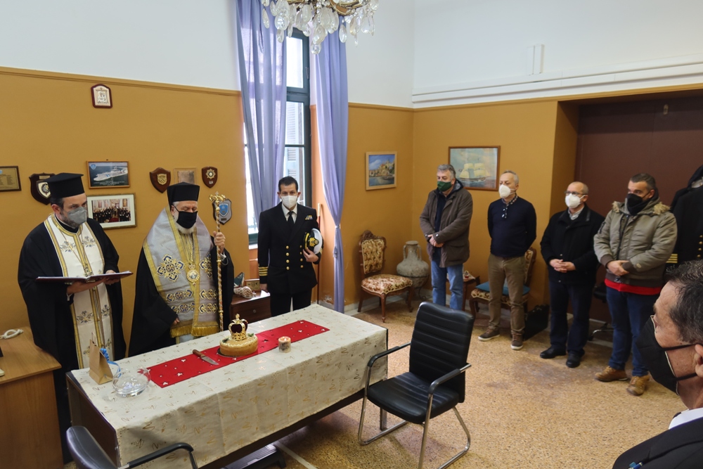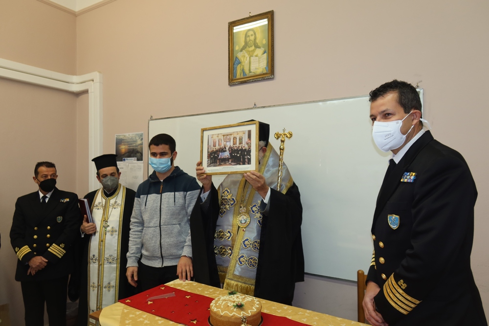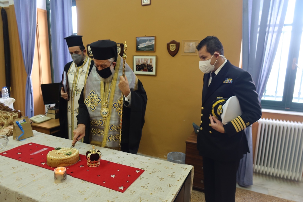 Στην Ακαδημία Εμπορικού Ναυτικού Σύρου ευλόγησε την Αγιοβασιλειόπιτα ο Σεβασμιώτατος κ. Δωρόθεος Β΄