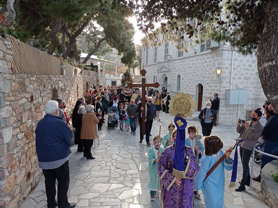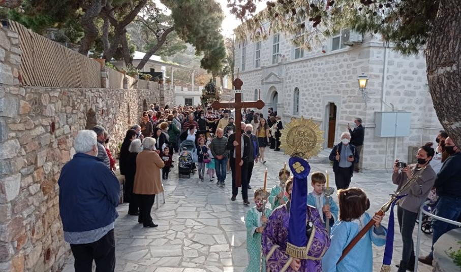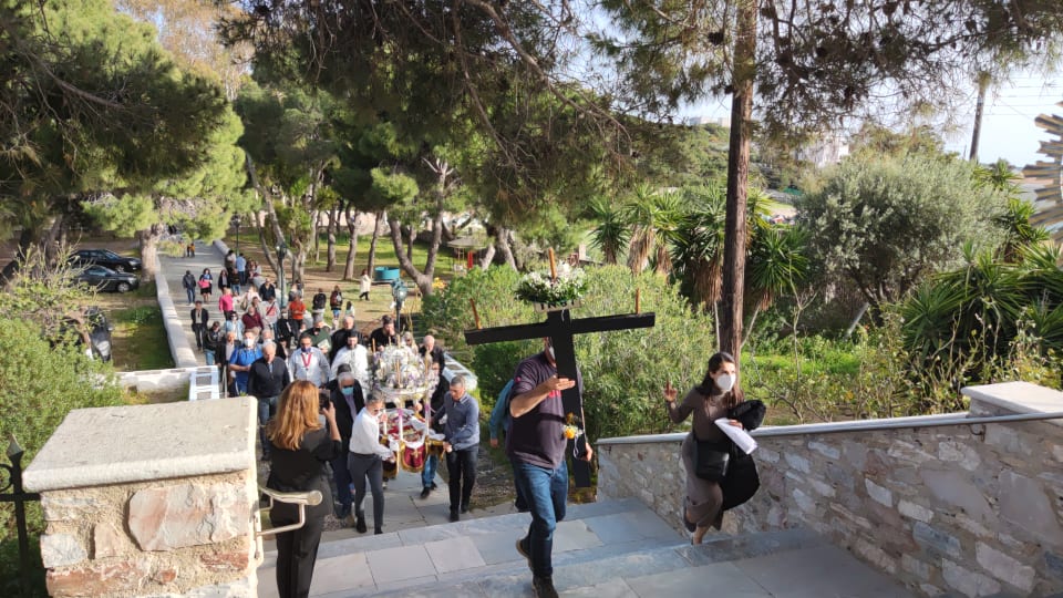 Όπως είθισται, στους ναούς της περιφέρειας της Σύρου, η περιφορά του επιταφίου πραγματοποιείται το απόγευμα, με πλήθος πιστών να συμμετέχουν στις λιτανείες.