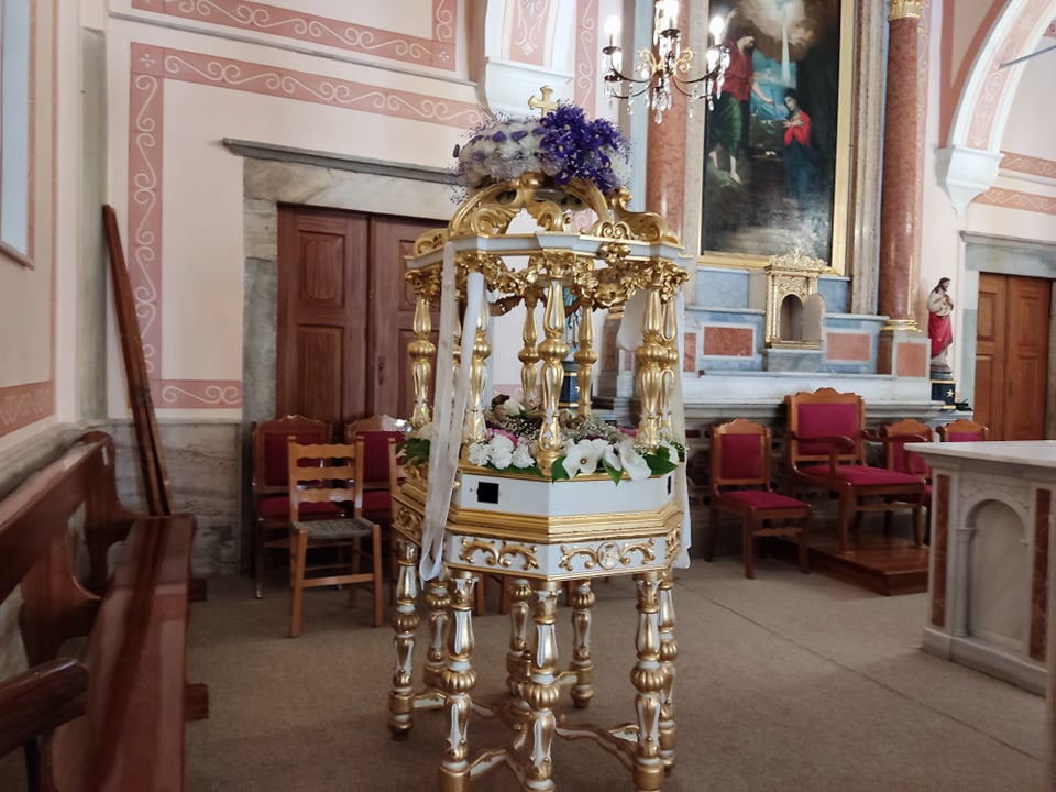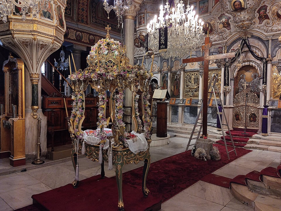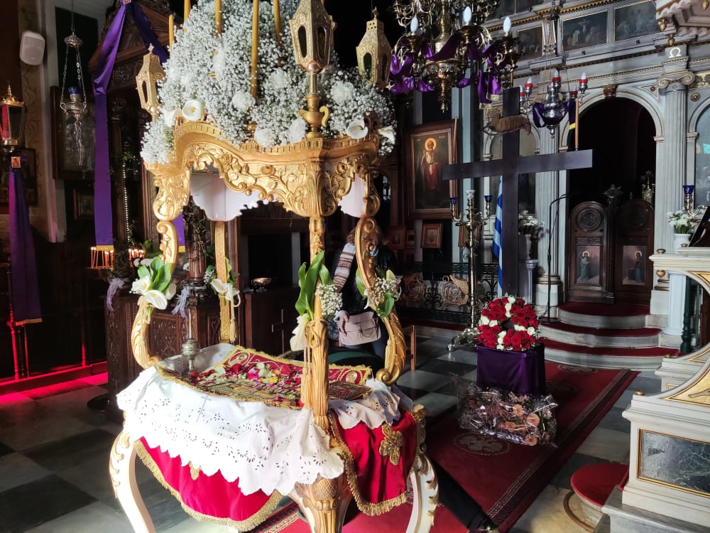 Μεγαλοπρέπεια και κατάνυξη στους ναούς της Σύρου σήμερα, Μεγάλη Παρασκευή, όπου από το πρωί κάτοικοι και εκατοντάδες επισκέπτες του νησιού συρρέουν προκειμένου να προσκυνήσουν τον επιτάφιο, συμμετέχοντας και τιμώντας το Θείο Δράμα.