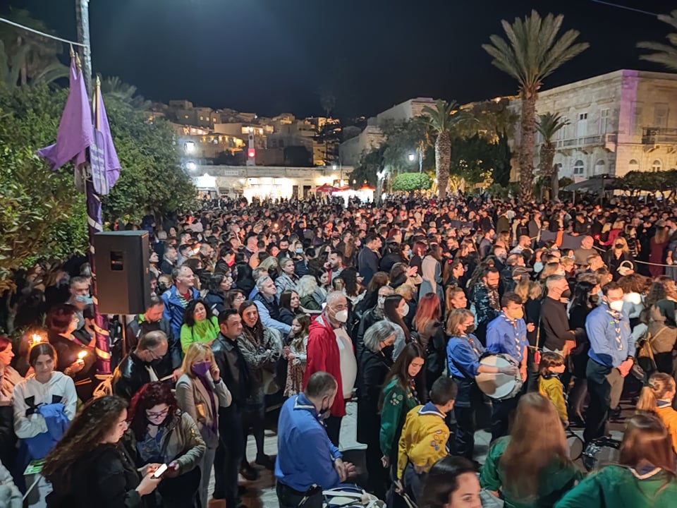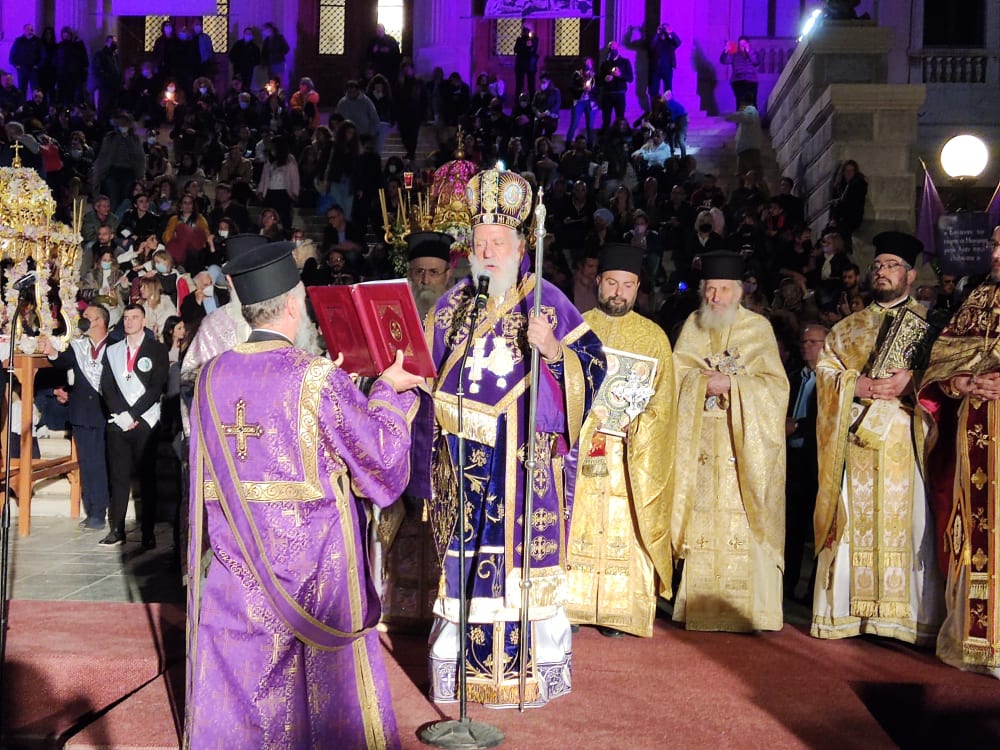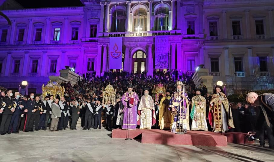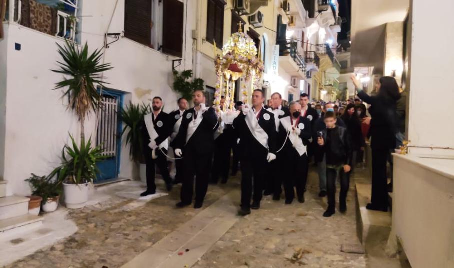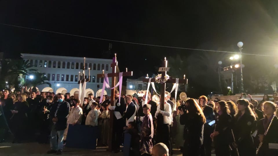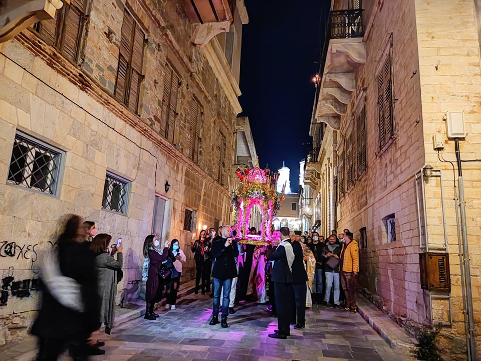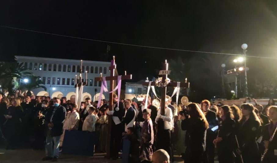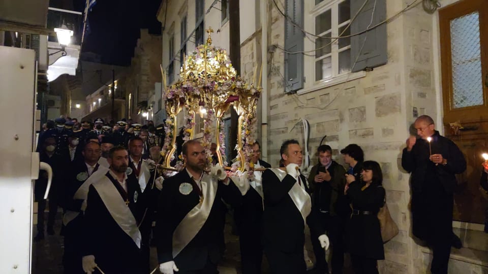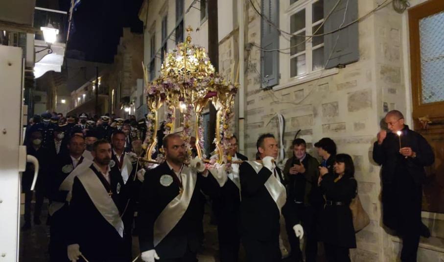 Οι πιστοί κατέκλυσαν τους ναούς, ενώ πλημμυρισμένη από κόσμο ήταν και η πλατεία Μιαούλη, με το φωτισμένο Δημαρχιακό μέγαρο, το φως των λαμπάδων στα χέρια του κόσμου και τα πένθιμα εμβατήρια από τη Φιλαρμονική του Δήμου Σύρου - Ερμούπολης, να δημιουργούν μία μυσταγωγική ατμόσφαιρα, που θύμιζε την προ-covid εποχή.