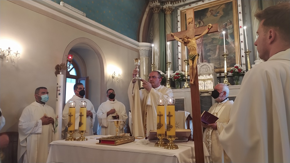 Στη συνέχεια, ο Σεβ. π. Πέτρος Στεφάνου, παίρνοντας ξανά το λόγο, εξέφρασε την ικανοποίησή του που μετά από τέσσερα χρόνια προσπαθειών γίνεται επιτέλους πραγματικότητα η επιθυμία όλων να ενισχυθεί με ιερείς , μοναχούς και μοναχές το ποιμαντικό έργο της τοπικής εκκλησίας. Ευχήθηκε να αποδειχτεί ιστορική η συγκεκριμένη μέρα ώστε να ριζώσει και να μακροημερεύσει η νέα κοινότητα του τάγματος του Ενσαρκωμένου Λόγου και καλωσόρισε τους δύο ιερομόναχους , με καταγωγή από την Αργεντινή, τον πατέρα Φερνάντο ο οποίος θα αναλάβει καθήκοντα ως εφημέριος της ενορίας του Αγίου Σεβαστιανού και τον πατέρα Σέργιο,ο οποίος ξεκίνησε κι εκείνος ήδη μαθήματα ελληνικών ώστε σύντομα να αναλάβει ποιμαντικές ευθύνες. Τέλος, τους ευχήθηκε το Άγιο Πνεύμα να τους καθοδηγεί και να παραμένουν διαρκώς ενωμένοι με τον Ιησού.