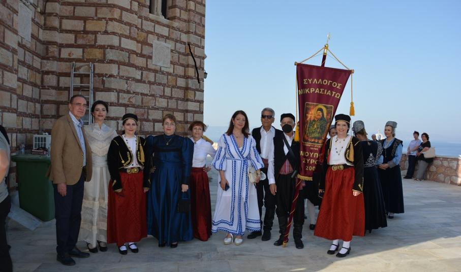 Ο Μητροπολίτης Σύρου κ. Δωρόθεος, ο Σεβασμιώτατος Μητροπολίτης Νέας Ιωνίας και Φιλαδελφείας κ. Γαβριήλ, ο Θεοφιλέστατος Επίσκοπος Ευρίπου κ. Χρυσόστομος, ο ιερός κλήρος, βουλευτές Κυκλάδων κα Α.Μονογυιού και κος Φ.Φόρτωμας, ο δήμαρχος Σύρου -Ερμούπολης κ. Ν. Λειβαδάρας, ο επικεφαλής της μείζονος μειοψηφίας του Δήμου Σύρου-Ερμούπολης, κ. Αλέξης Αθανασίου, περιφερειακοί και δημοτικοί σύμβουλοι, εκπρόσωποι του στρατού, του ναυτικού, του λιμενικού σώματος, της ελληνικής αστυνομίας, της πυροσβεστικής υπηρεσίας, της Ακαδημίας εμπορικού ναυτικού Σύρου, μέλη των συλλόγων Μικρασιατών Ερμούπολης Σύρου και Βορειοελλαδιτών Σύρου " Ο Εύξεινος Πόντος", με παραδοσιακές ενδυμασίες και τα λάβαρά τους, το Λυκείου Ελληνίδων και η Φιλαρμονική του Δήμου Σύρου -Ερμούπολης, βρέθηκαν στον προαύλιο χώρο του ιερού ναού για να τιμήσουν την ιερή εικόνα.
