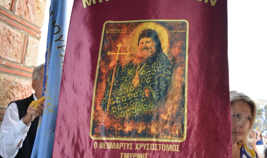 “Όπως οι κατατρεγμένοι πρόσφυγες από τη Μικρά Ασία και τα νησιά του ανατολικού αιγαίου βρήκαν σε αυτό το νησί αραξοβόλι παρηγοριάς και ίδρυσαν την Ερμούπολη , την πόλη των προσφύγων που μεγαλούργησε στα χρόνια της επανάστασης , έτσι 100 χρόνια μετά την καταστροφή, ο λαός της προσφυγούπολης Ερμούπολης και της Σύρας υποδέχεται σήμερα κι αυτήν την πρόσφυγα Παναγιά την οποία ευλαβικά την τιμά και την προσκυνά” είπε ο κ.Δωρόθεος παραλληλίζοντας το ταξίδι των προσφύγων με εκείνο της ιερής εικόνας της Παναγίας «Βουρλιωτίσσης», την πρόσφυγα "μητέρα των προσφύγων, τα μάτια της οποίας πληγώθηκαν βλέποντας τις σφαγές και τους διωγμούς των παιδιών της, η καρδιά της μάτωσε από το θρήνο των εκτοπισμένων, τα χέρια της πληγώθηκαν μεταφέροντας στον υιό της τις ψυχές των εκτελεσθέντων και τις προσευχές των ξεριζωμένων".