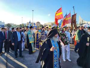 Στη συνέχεια, τελέστηκε δέηση από τον Σεβ.. Μητροπολίτη Θήρας κ. Αμφιλόχιο και ακολούθησε λιτανευτική πομπή προς τον Ιερό Ναό Αγίου Δημητρίου Πειραιώς όπου τελέστηκε δέηση και δοξολογία.