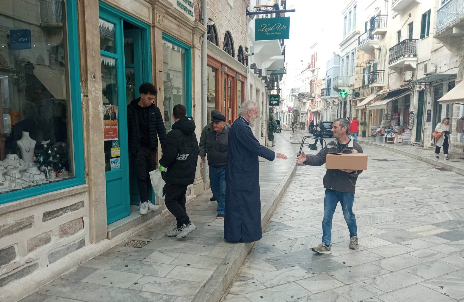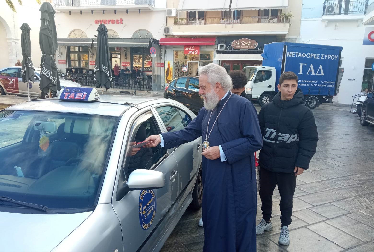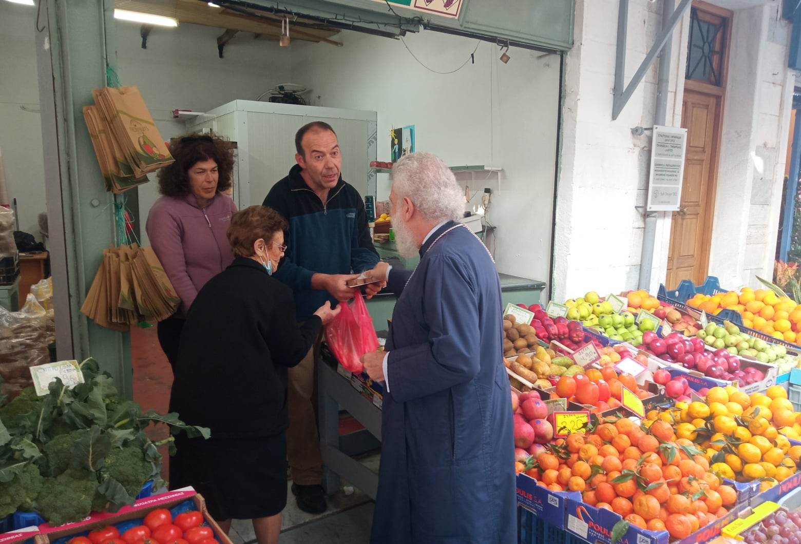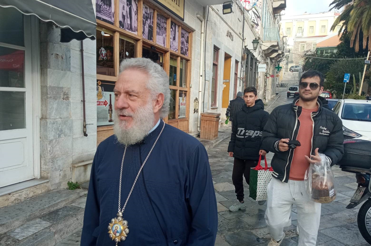 Ο μητροπολίτης Σύρου Δωρόθεος πραγματοποίησε την καθιερωμένη βόλτα του στην αγορά της Ερμούπολης