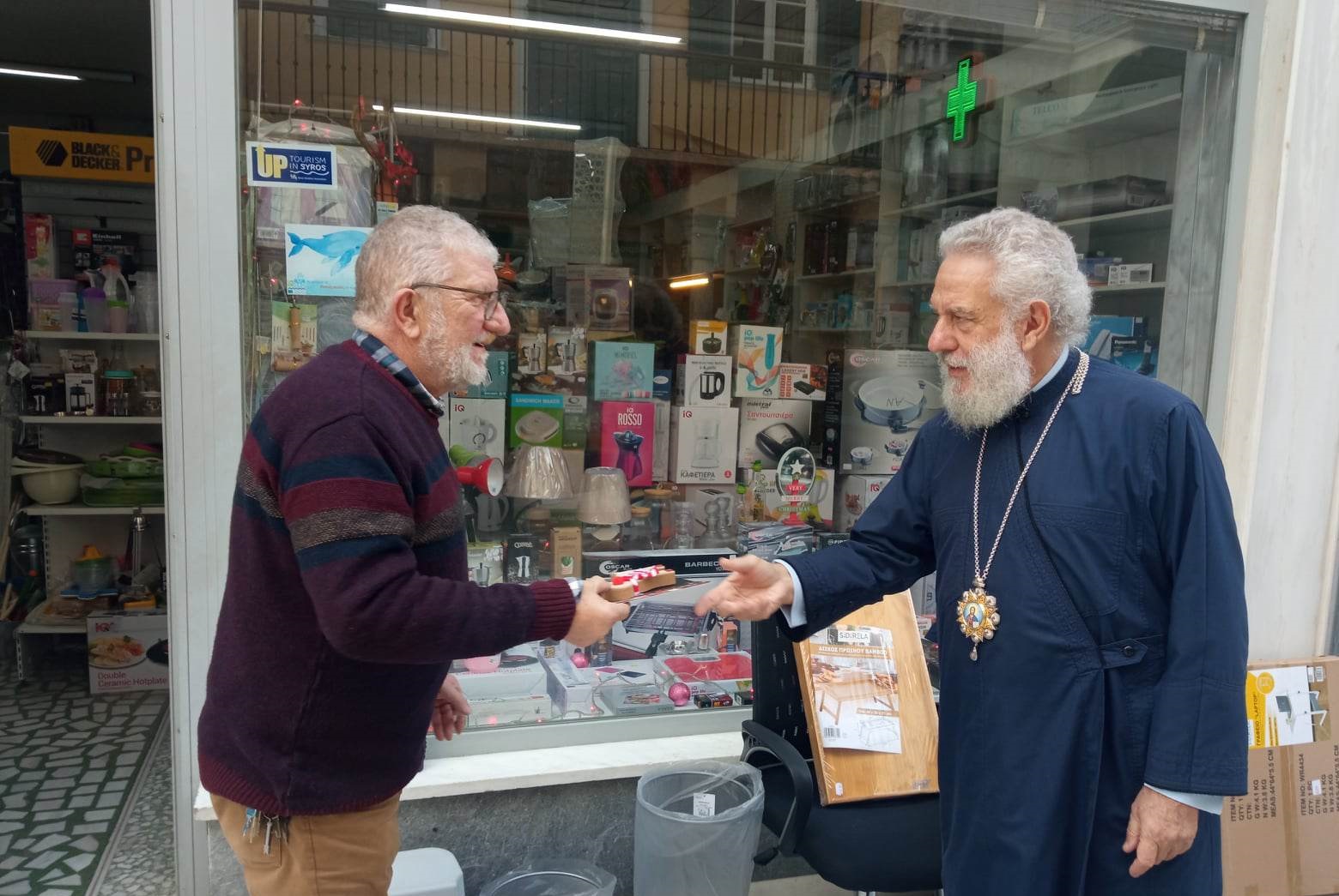 Μάλιστα, η εικόνα του μητροπολίτη Σύρου να κάνει βόλτα στα μαγαζιά της Ερμούπολης σκόρπισε ενθουσιασμό στους περαστικούς, καθώς δεν ήταν λίγοι αυτοί που τον σταμάτησαν, προκειμένου να ζητήσουν τις ευχές και την ευλογία του.