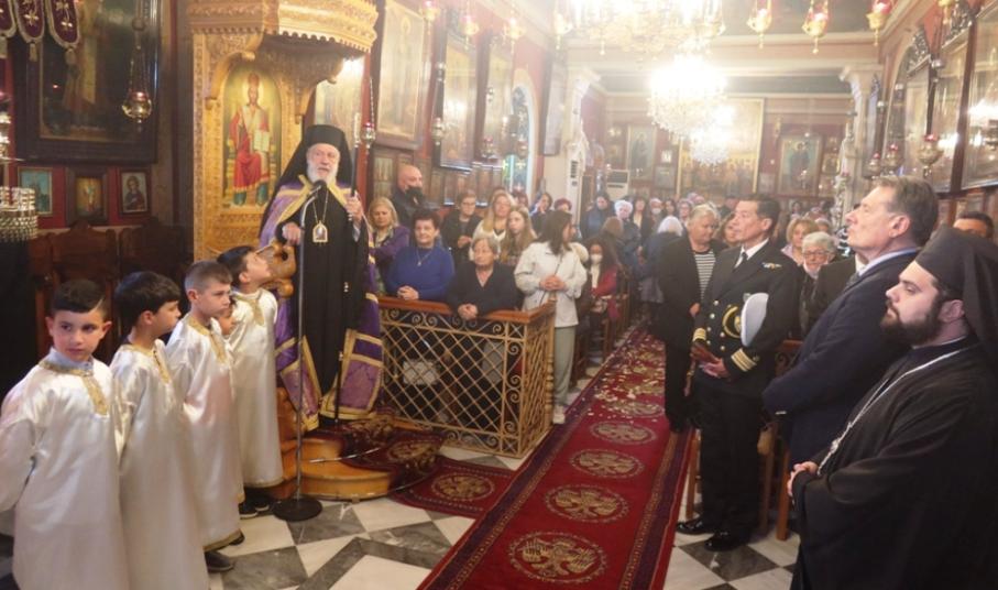 Μετά την ειδική Ακολουθία επί τη υποδοχή του ιερού Λειψάνου, το οποίο εναπετέθη σε περίτεχνο μαρμάρινο προσκυνητάριο, έμπροσθεν της Εικόνος του, προς διηνεκή ευλογία των πιστών, τελέσθηκε ο Κατανυκτικός Εσπερινός, προεξάρχοντος του μητροπολίτη Δωροθέου Β', ο οποίος με εγκάρδιους λόγους συνεχάρη τον Εφημέριο του Ναού, Πρεσβύτερο Νικόλαο Χαρούλη για την εύορκο και ευδόκιμο διακονία του.
