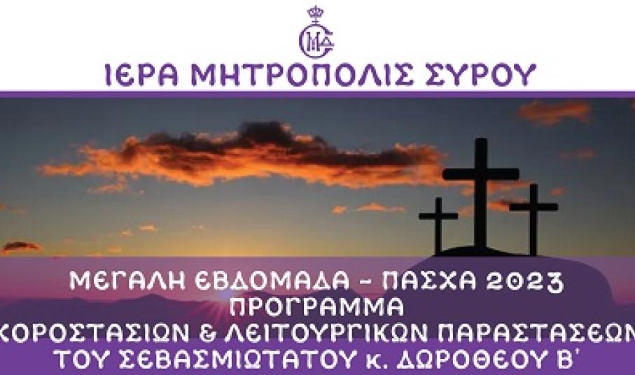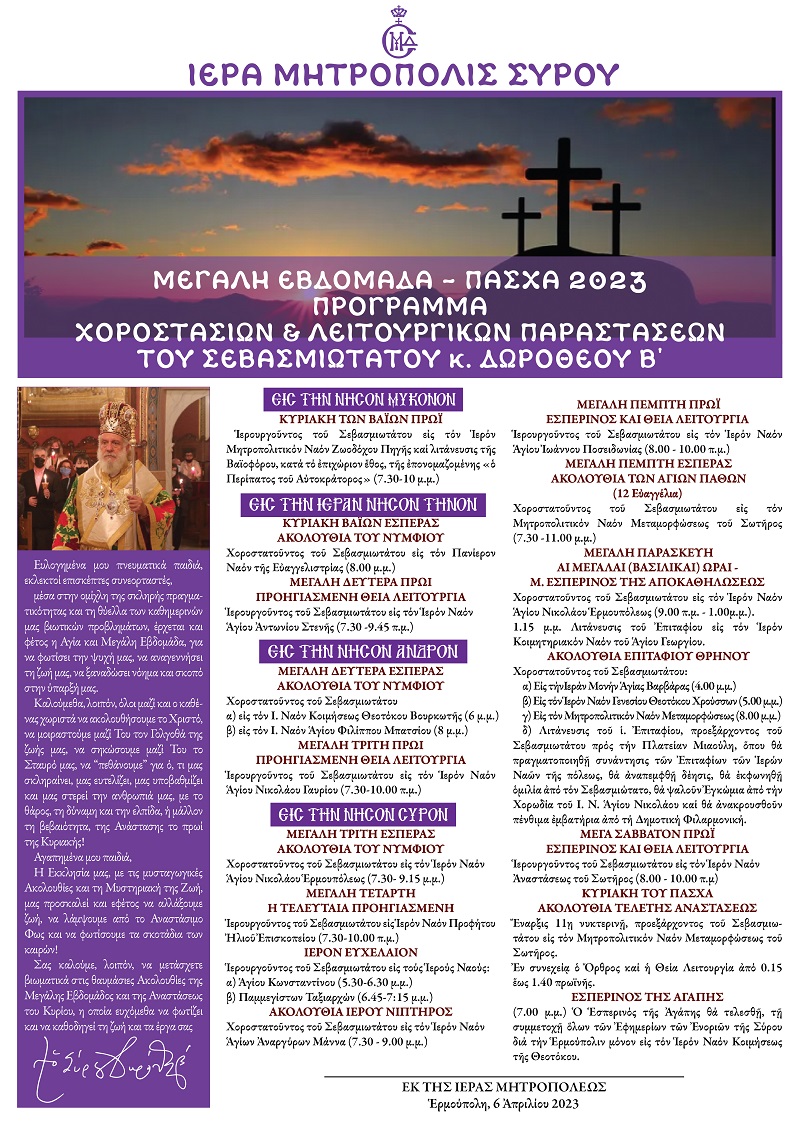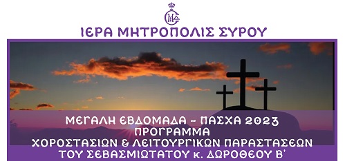 Ανακοίνωση για το πρόγραμμα των Ακολουθιών της Μεγάλης Εβδομάδας, εξέδωσε η Ιερά Μητρόπολη Σύρου, η οποία ξεκινά με ένα μήνυμα του Μητροπολίτη Δωρόθεου:
