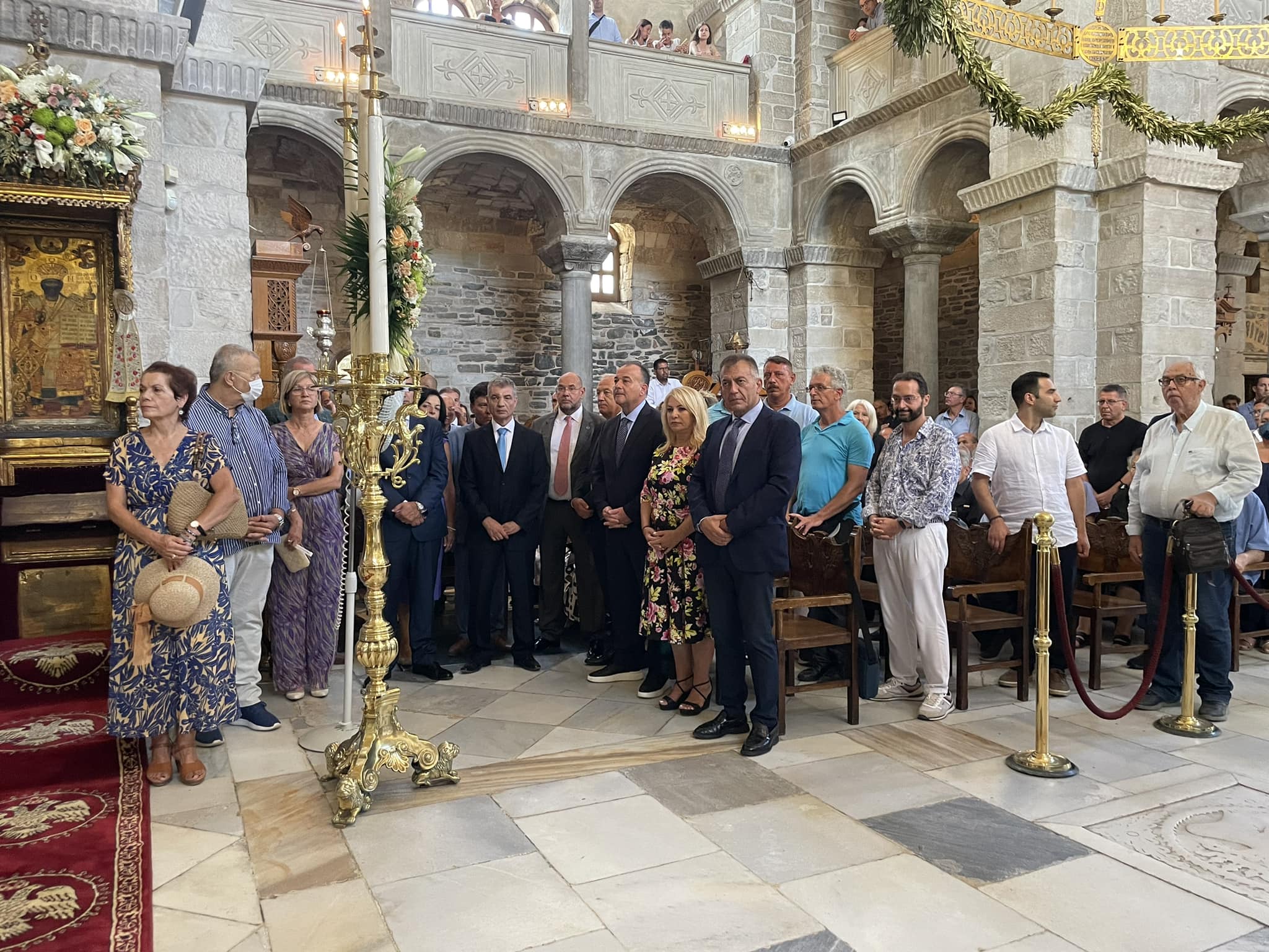 Στη Θεία λειτουργία χοροστάτησε ο μητροπολίτης Παροναξίας, Καλλίνικος. Το "παρών" έδωσαν επίσης, ο αναπληρωτής υπουργός Αθλητισμού, Γιάννης Βρούτσης, η Κατερίνα Μονογυιού, ο δήμαρχος Πάρου, Μάρκος Κωβαίος και ο έπαρχος Πάρου Αντιπάρου, Κώστας Μπιζάς.