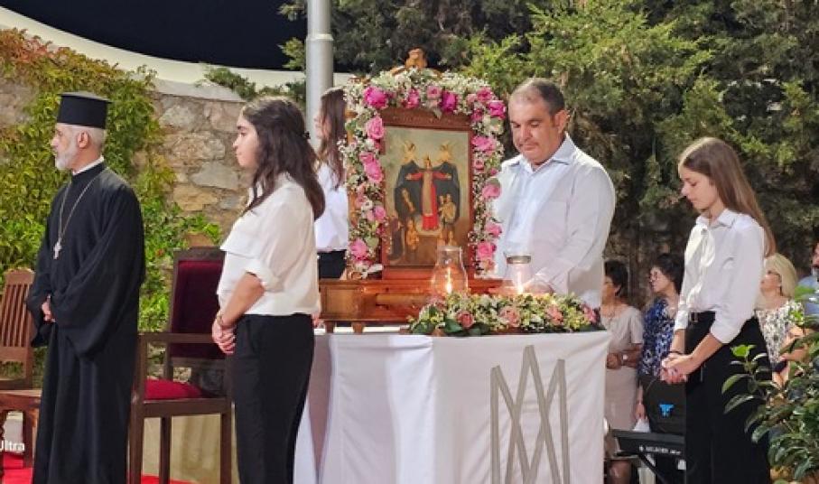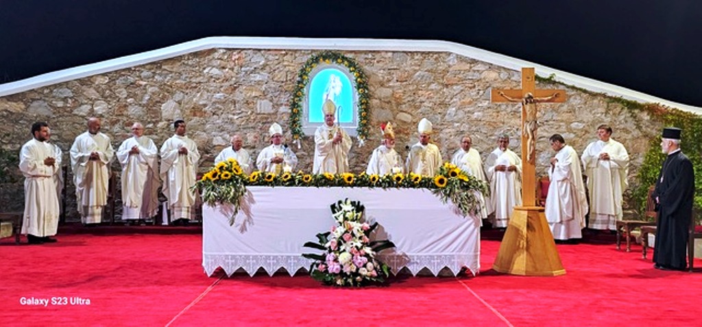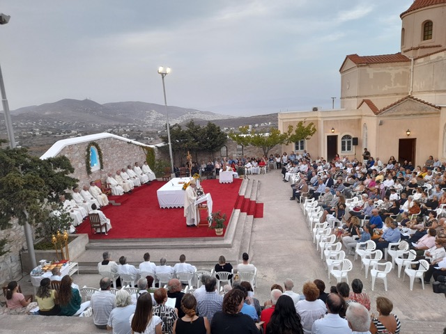 Πολυαρχιερατικό Συλλείτουργο, πραγματοποιήθηκε το απόγευμα της Κυριακής στον ιερό ναό της Παναγίας Φανερωμένης, στο οποίο προΐστατο ο καθολικός επίσκοπος, Σεβασμιότατος Πέτρος Στεφάνου, ενώ συμμετείχαν ο αποστολικός Νούντσιος στην Ελλάδα, Αρχιεπίσκοπος, Jan Romeo Pawlowski, ο Σεβασμιώτατος Αθηνών, Σεβαστιανός Ροσσολάτος, ο Σεβασμιώτατος Τήνου, Νάξου και παντός Αιγαίου, Νικόλαος Πρίντεζης, καθώς και εκπρόσωπος της Ιεράς Μητροπόλεως Σύρου.