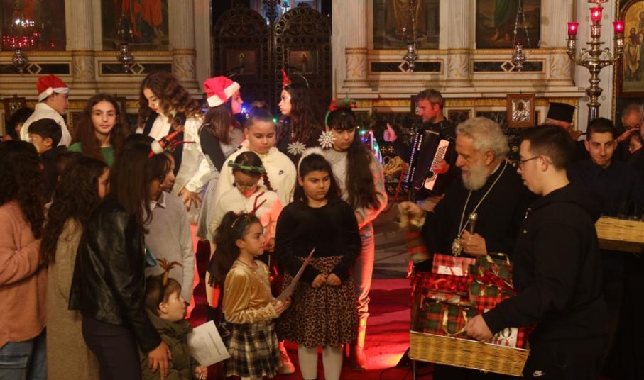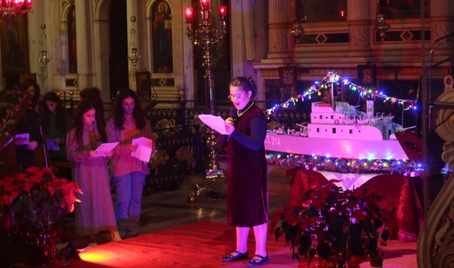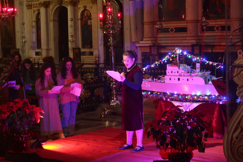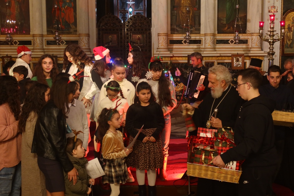 Τα παιδιά των Κατηχητικών, υπό την καθοδήγηση του Κατηχητού τους και Προϊσταμένου του Ναού Αρχιμ. Βενέδικτου Φραγκογιάννη , και των Κατηχητών- βοηθών του, παρουσίασαν διδακτικά δρώμενα, Χριστουγεννιάτικα ποιήματα και τραγούδια, με συνοδεία αρμονίου και ακορντεόν.