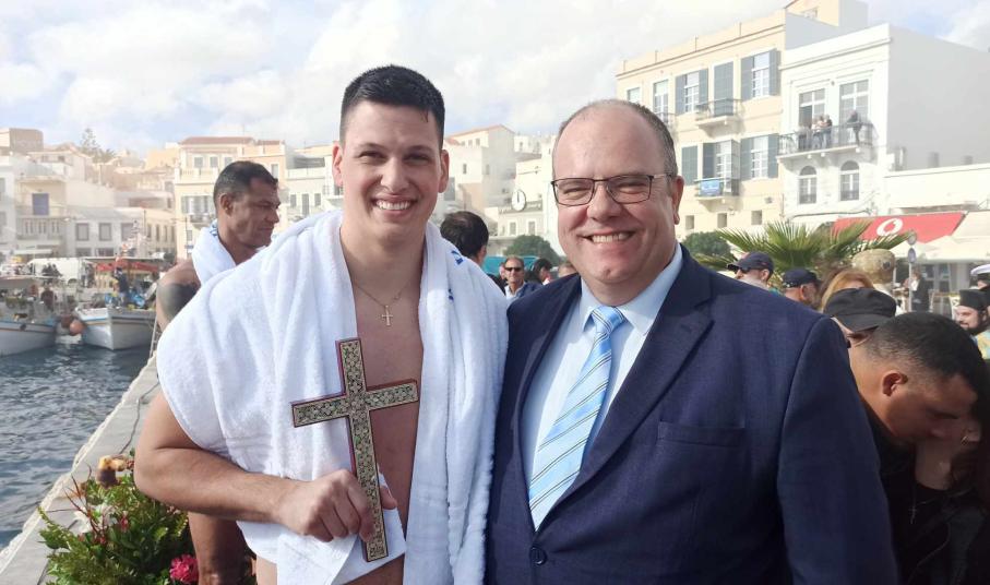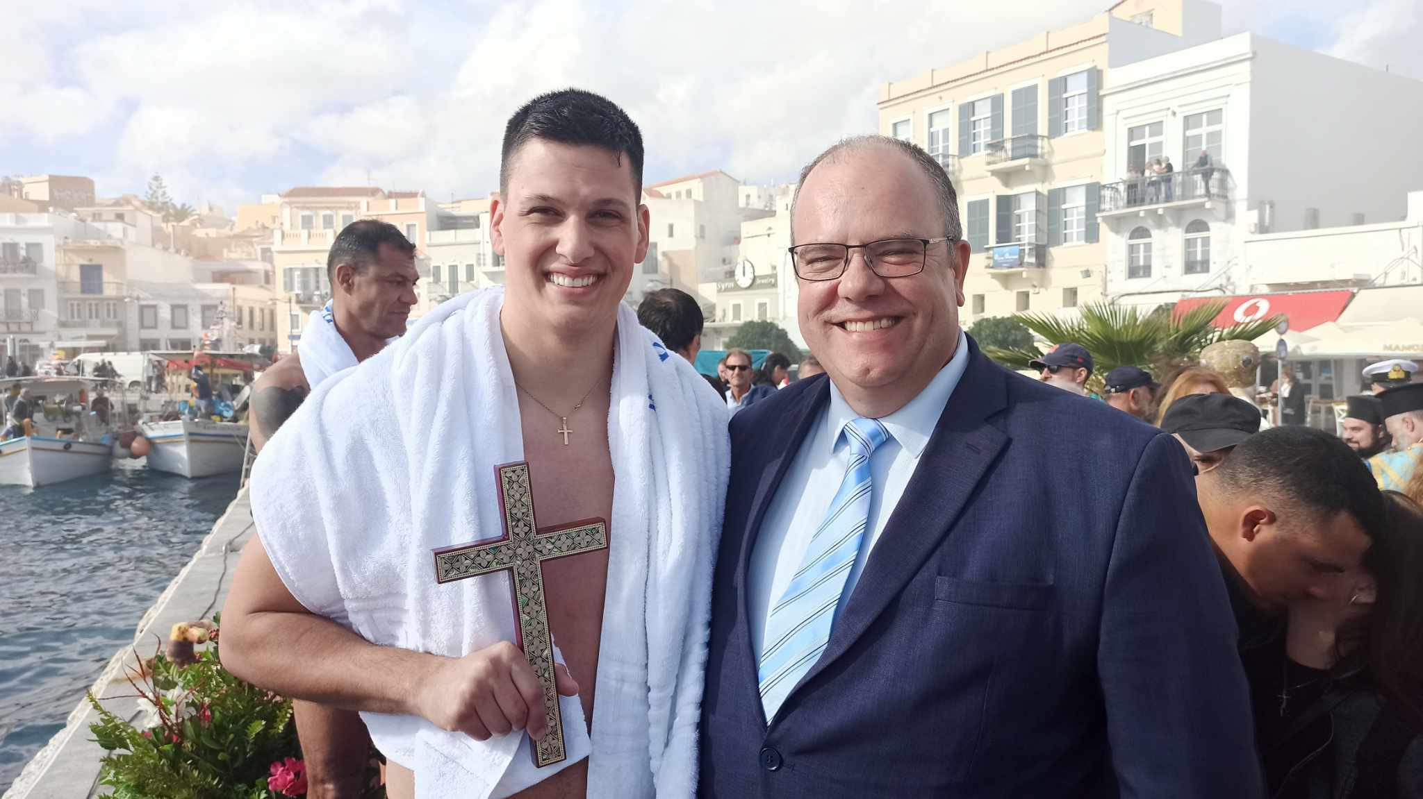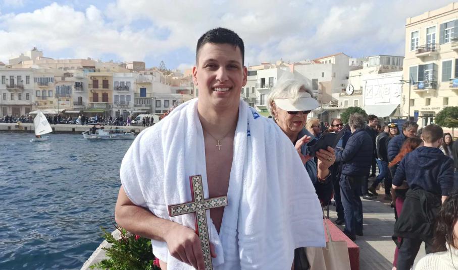 Ο τυχερός που έπιασε τον σταυρό ήταν ο Μανώλης Μουλίδης, ο οποίος κατενθουσιασμένος τον αφιέρωσε στη μικρή βαφτισιμιά του, η οποία, όπως είπε, το τελευταίο χρονικό διάστημα αντιμετώπισε αρκετά προβλήματα.