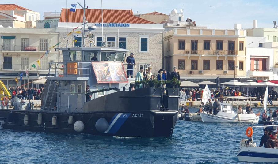 Οι εορταστικές εκδηλώσεις άρχισαν με τη θεία λειτουργία που πραγματοποιήθηκε το πρωί στον μητροπολιτικό ναό της Μεταμορφώσεως, ενώ στη συνέχεια ακολούθησε λιτανεία με επικεφαλής τον μητροπολίτη Σύρου, Δωρόθεο Β’, αλλά και με την παρουσία ανδρών του Λιμενικού Σώματος, της Φιλαρμονικής του Δήμου Σύρου - Ερμούπολης, του Λυκείου Ελληνίδων Σύρου και του Σώματος Ελλήνων Προσκόπων, η οποία κατέληξε στο λιμάνι.