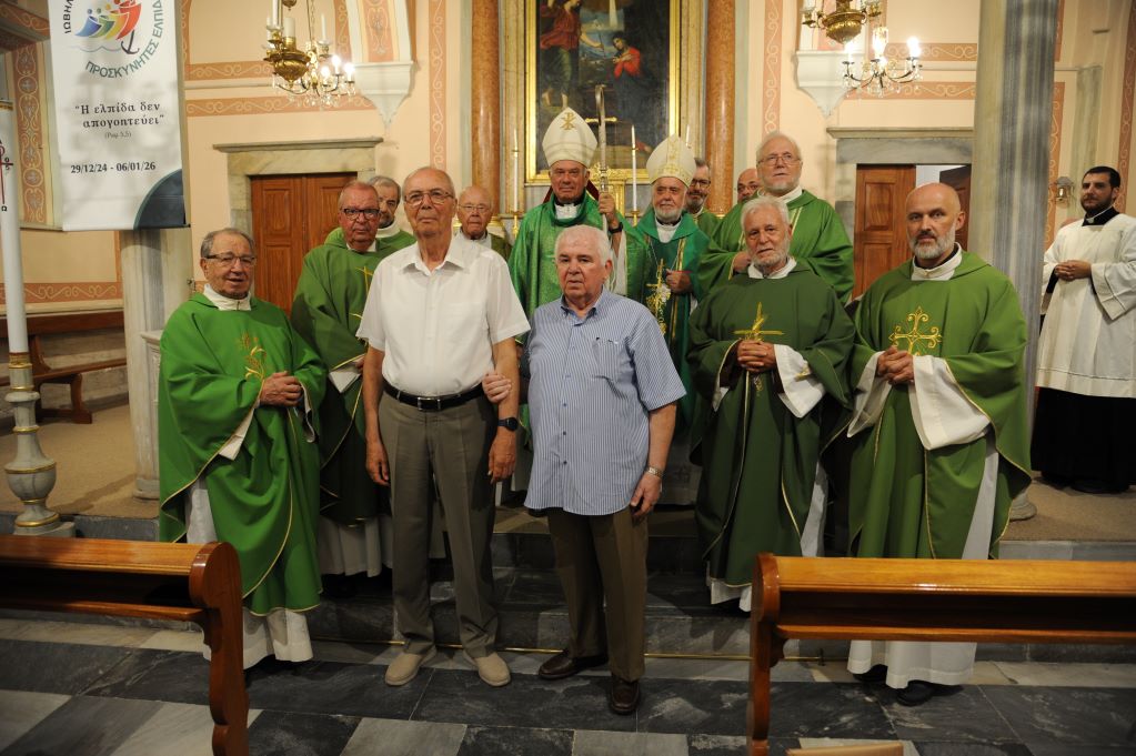 Τα 50 χρόνια αφιερωμένης μοναχικής ζωής στη Σύρο, των Αδελφών του Τάγματος των Χριστιανικών Σχολείων Δελασάλ, Φραγκίσκου Βαρθαλίτη και Νικόλαου Πρίνεζη, γιόρτασαν στον ιερό ναό Ευαγγελίστριας Ερμούπολης στις 24 Αυγούστου 2025.