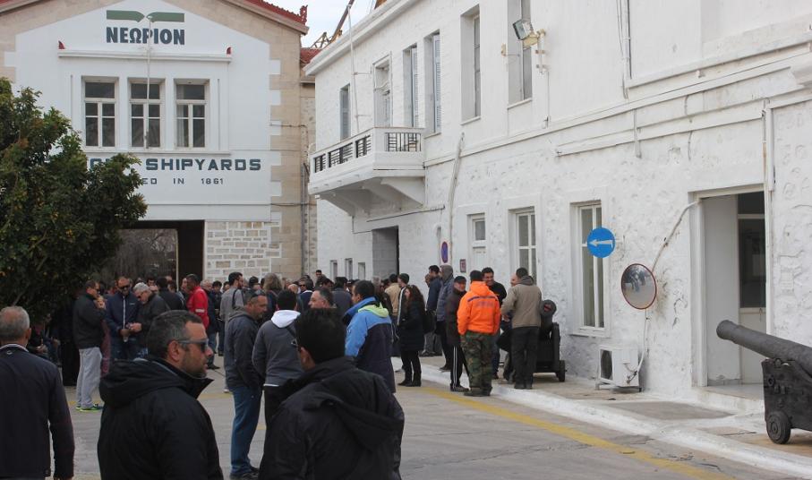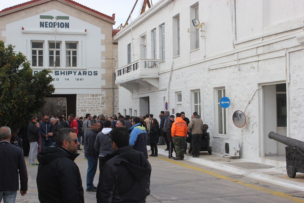 Με φόντο τις οικονομικές εκκρεμότητες που διατηρεί το ναυπηγείο απέναντί τους, δεδομένης της συνεχούς ροής εργασιών, σήμερα νωρίς το πρωί οι εργαζόμενοι συγκεντρώθηκαν στην πύλη του Νεωρίου, όπου και παραμένουν.