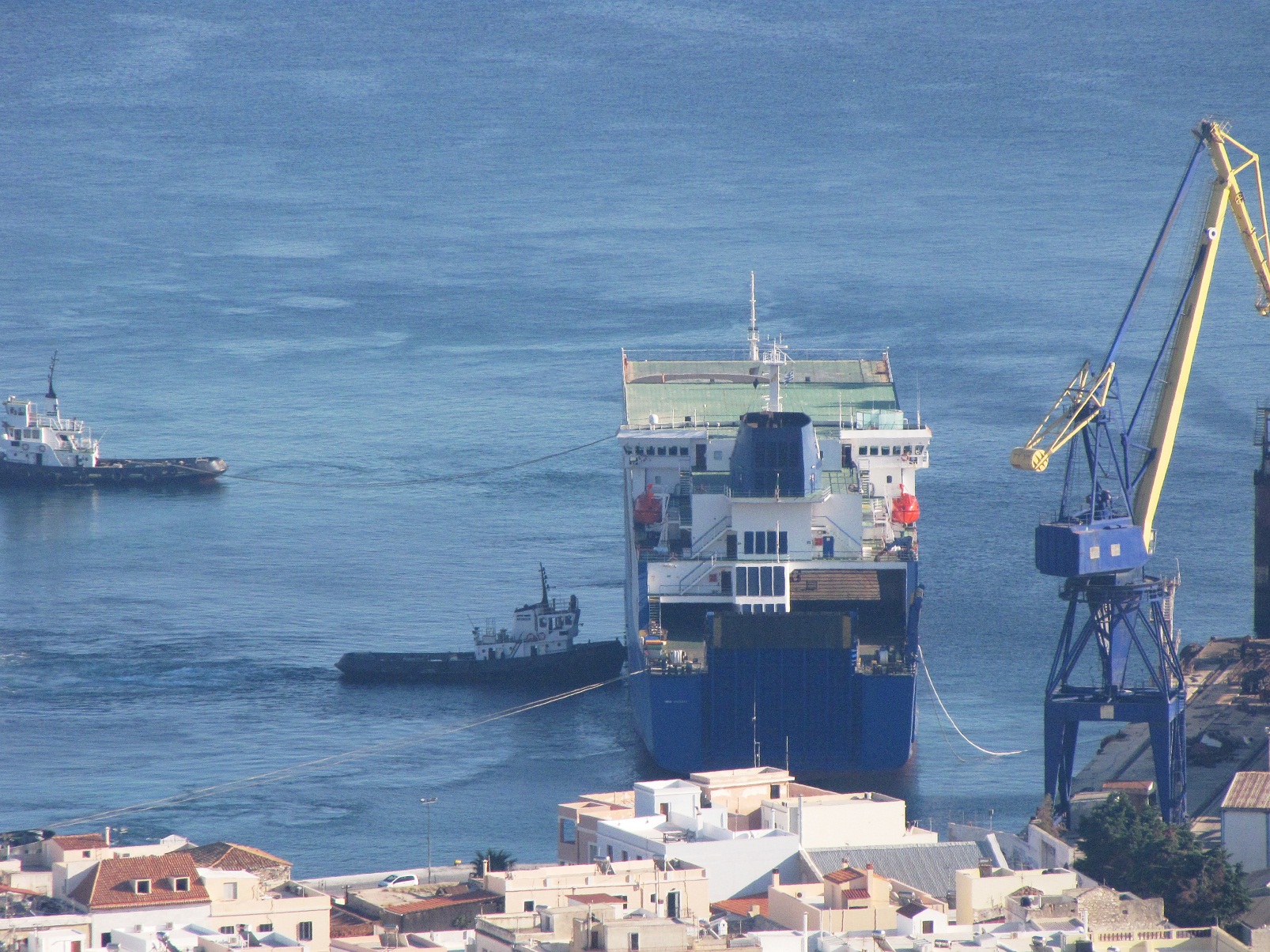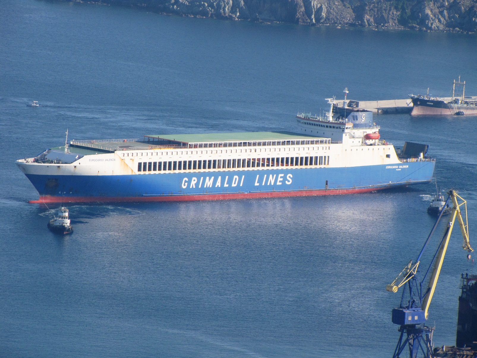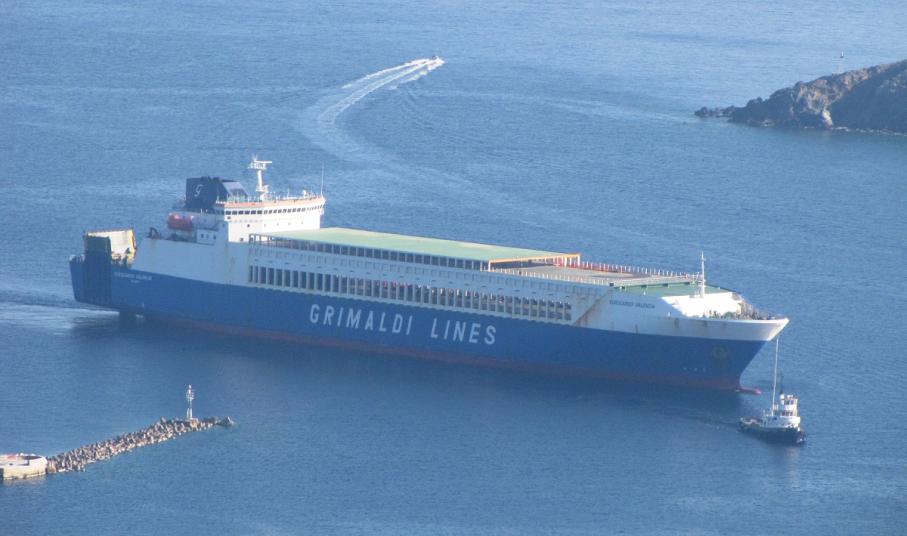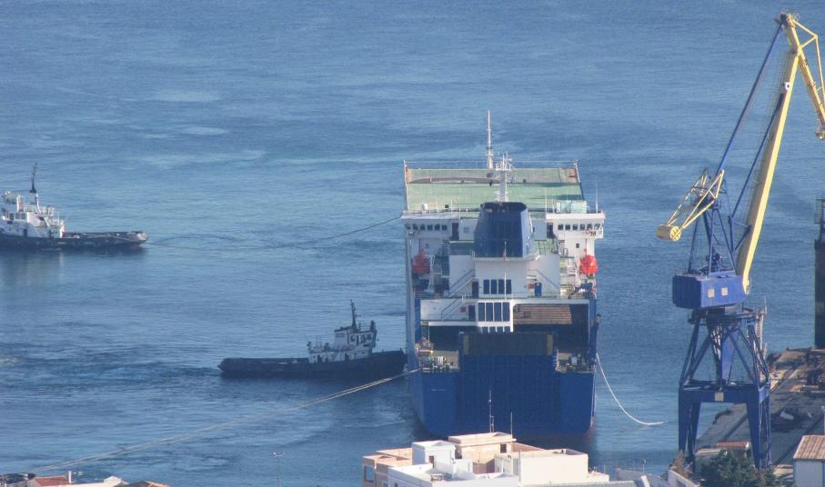 Το ro/ro cargo liner της GRIMALDI LINES EUROCARGO VALENCIA, προερχόμενο από το λιμάνι Αshdod του Ισραήλ, αφίχθη το πρωί της Τετάρτης στη Σύρο, ρυμουλκούμενο από το ρ/κ WJT 3500 .Το πλοίο παρέμεινε εκτός λιμένος για λίγες ώρες, λόγω αυξημένης επιβατικής κίνησης και στις 14:20΄ παρελήφθη από τα ρυμουλκά του Νεωρίου ενώ επιβιβάστηκε και πιλότος που το οδήγησε στο Ναυπηγείο και συγκεκριμένα στη θέση 1,μπροστά στην Πυροσβεστική,όπου και πρυμνοδέτησε.