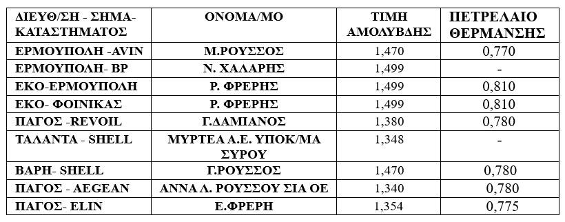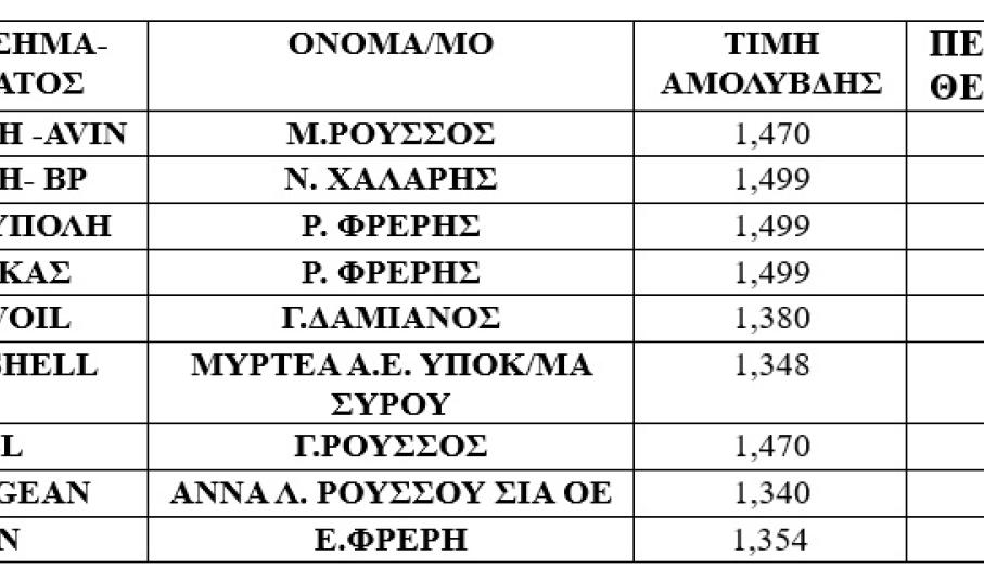 Σας ενημερώνουμε ότι η σχετική λίστα θα στέλνεται από την Υπηρεσία μας συνήθως κάθε Δευτέρα, η καθημερινή ενημέρωση των αυξομειώσεων των τιμών των καυσίμων θα δημοσιεύεται στην ιστοσελίδα του Υπουργείου Ανάπτυξης www.Fuelprices.gr.
