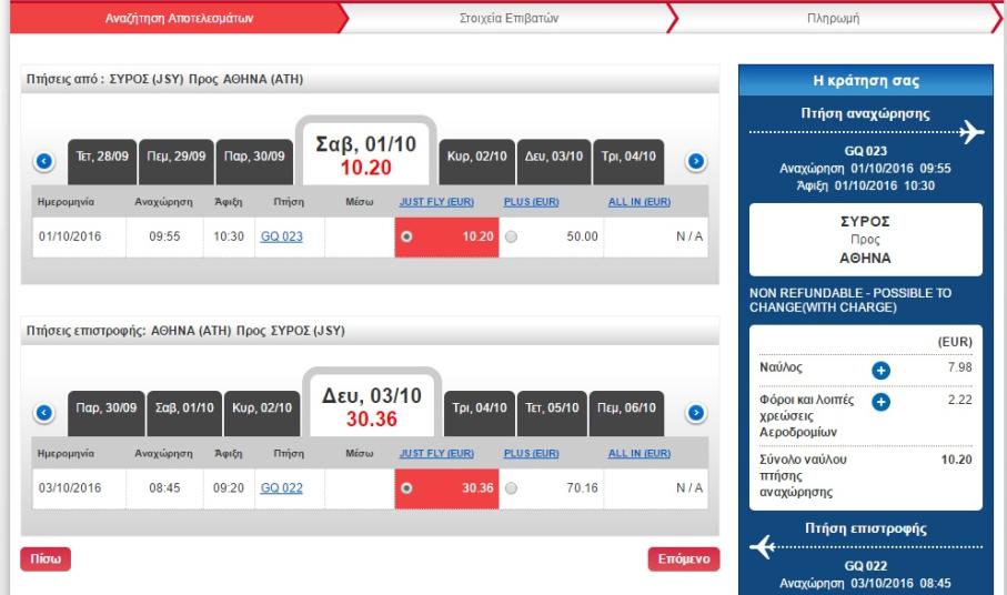 Αρ. πτήσης GQ023 Ώρα αναχώρησης 09:55 Ώρα άφιξης 10:30 - Διάρκεια πτήσης 35 λεπτά (κάθε Σάββατο)