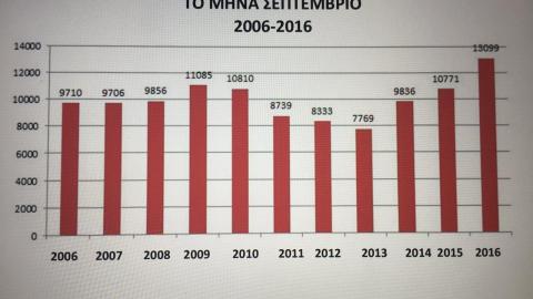 Συγκεκριμένα οι αφίξεις του 2016 σε σχέση με το 2015 ήταν: