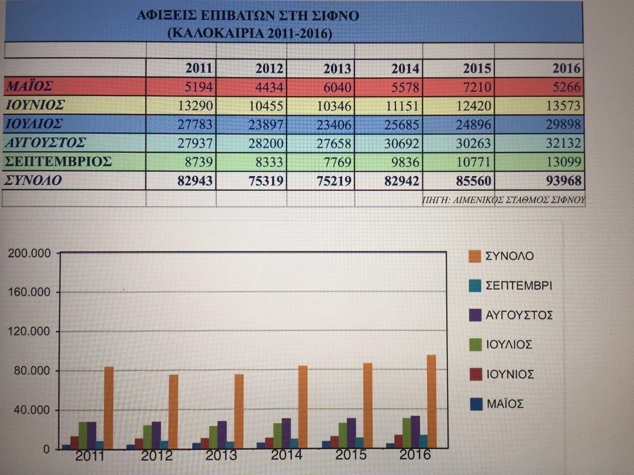 Αύξηση στην επιβατική κίνηση έδειξε η Σίφνος το 5μηνο Μαΐου-Σεπτεμβρίου 2016, αποδεικνύοντας πως μπορεί να αντέξει σημαντικές αναταράξεις τόσο στην Ελλάδα όσο και στο εξωτερικό.