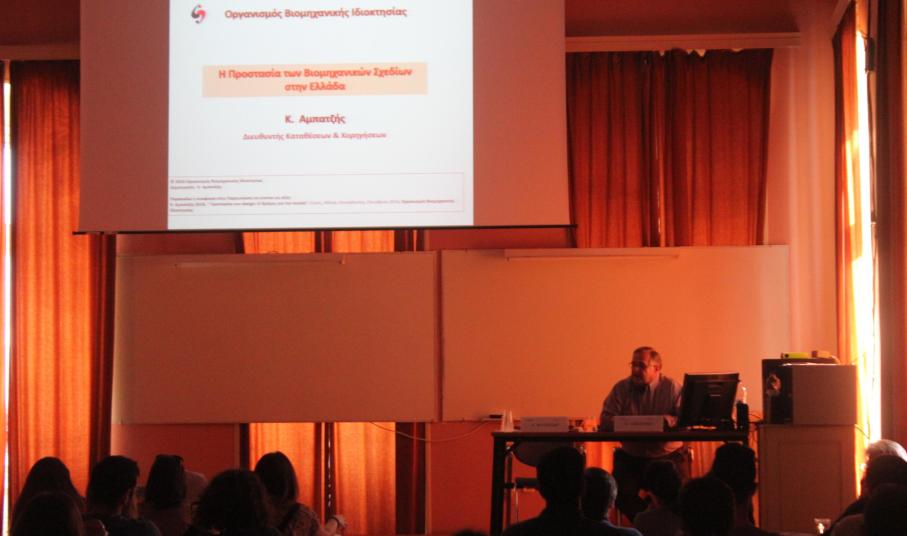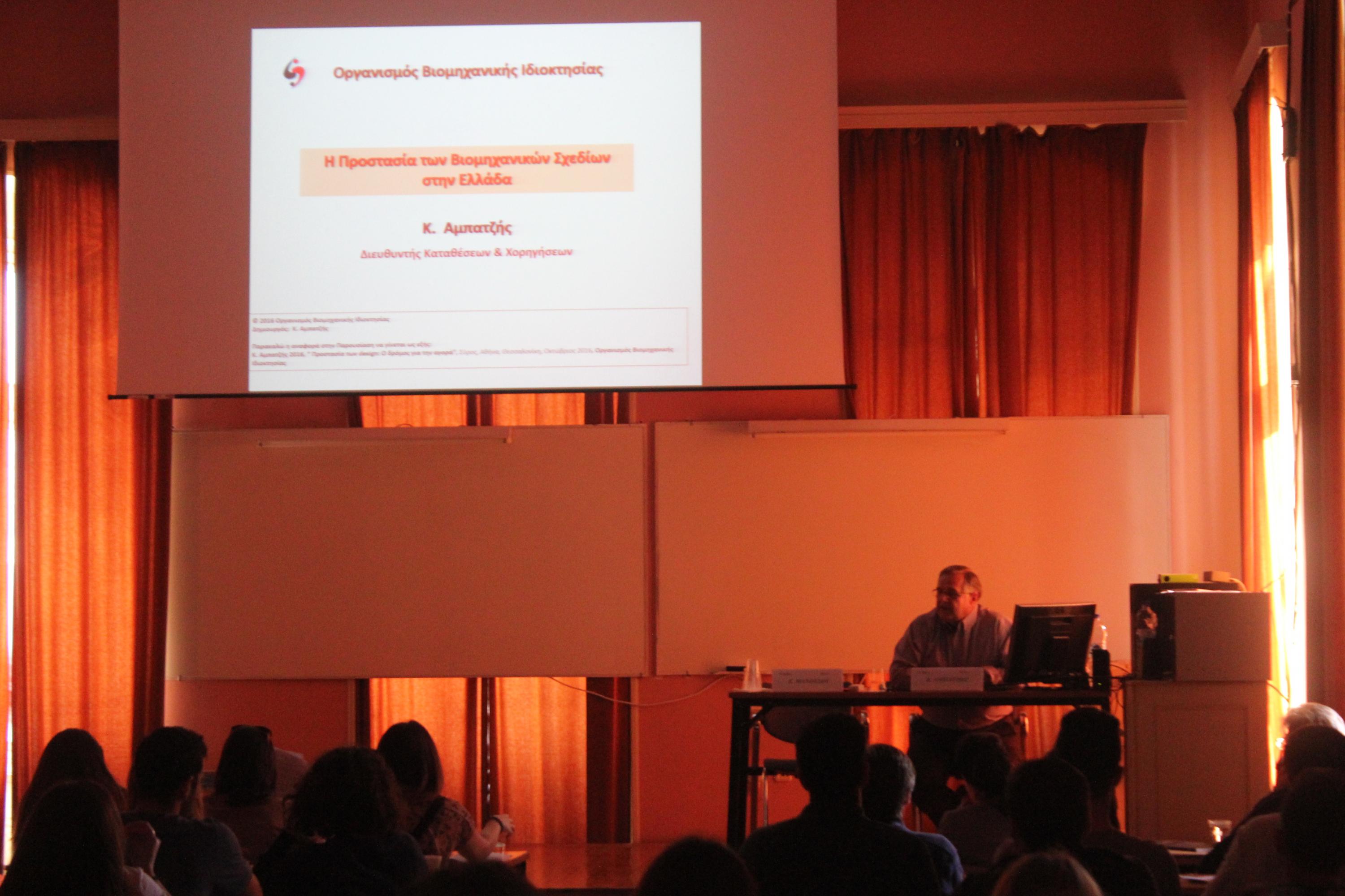 Στο πλαίσιο του σεμιναρίου, οι συμμετέχοντες ενημερώθηκαν για τους τρόπους προστασίας σχεδίων και υποδειγμάτων στην Ελλάδα, που αποτελούν την εξωτερικά ορατή εικόνα του συνόλου ή μέρος ενός βιομηχανικού προϊόντος, η οποία προκύπτει από τα ιδιαίτερα χαρακτηριστικά που έχει (γραμμή, σχήμα, χρώμα κ.α).
