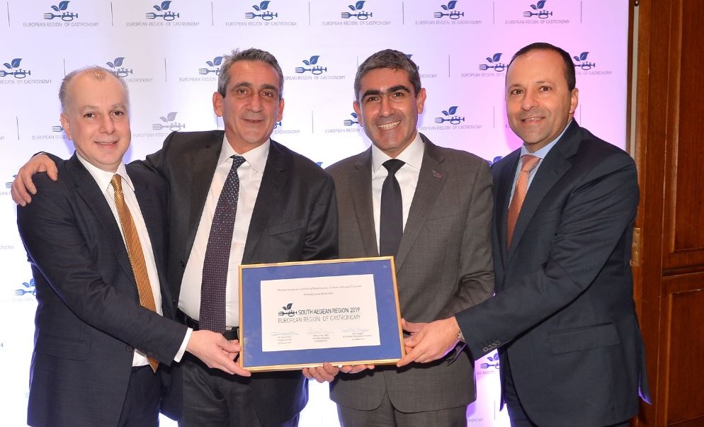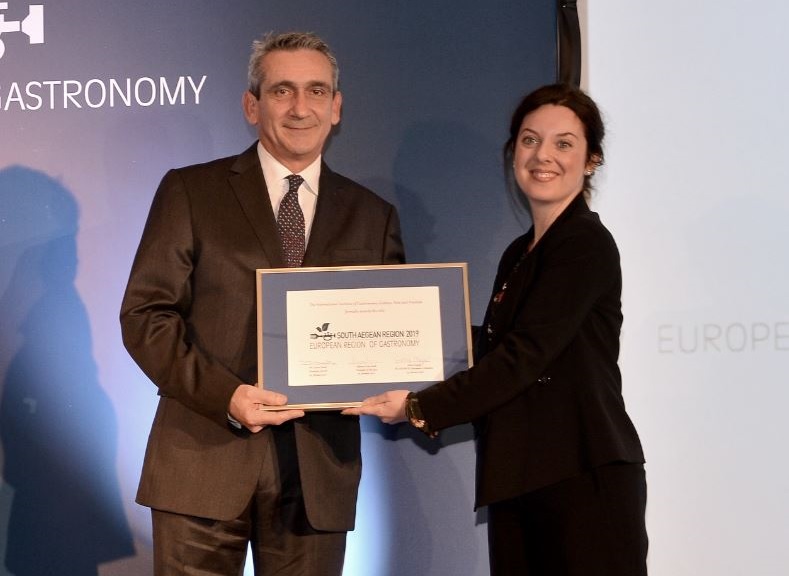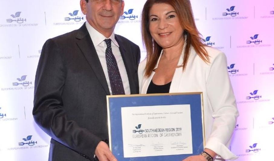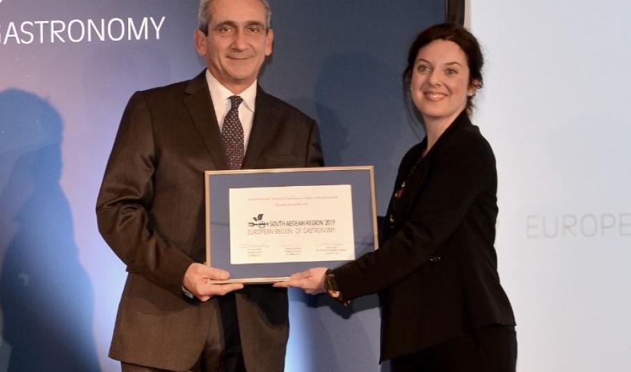 Στην διάρκεια λαμπρής εκδήλωσης στο ξενοδοχείο “Μεγάλη Βρετανία” , στην Αθήνα, έγινε σήμερα η απονομή του τίτλου "European Region of Gastronomy 2019", στην Περιφέρεια Νοτίου Αιγαίου.