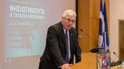 Ο πρόεδρος της επιστημονικής επιτροπής του συνεδρίου, Καθηγητής Άγγελος Κότιος, Κοσμήτορας της Σχολής Οικονομικών, Επιχειρηματικών και Διεθνών Σπουδών στο Πανεπιστήμιο Πειραιώς, στο χαιρετισμό του, αναφέρθηκε «… στον πολυεπίπεδο χαρακτήρα και την ολοκληρωμένη διεπιστημονική προσέγγιση του συνεδρίου όσο και τη στόχευση του, στο να καταγράψει την τρέχουσα επιστημονική γνώση και ερευνητική εμπειρία και να τις μετατρέψει σε χρήσιμο και αποτελεσματικό εργαλείο δράσης όχι μόνον επιστημονικών αλλά και πολιτικών, κρατικών και επιχειρηματικών φορέων, παρουσιάζοντας τα εθνικά επιχειρήματα στη συζήτηση που ξεκινάει με την Ε.Ε. για τη νέα Πολιτική Συνοχής και την διακριτή αντιμετώπιση του νησιωτικού χώρου στο πλαίσιο των διαμορφούμενων ευρωπαϊκών πολιτικών..». Στον χαιρετισμό του ο πρύτανης του Πανεπιστημίου καθηγητής Νίκος Γεωργόπουλος στάθηκε στην ίδρυση του Τμήματος Τουριστικών Σπουδών στο Πανεπιστήμιο Πειραιώς το οποίο εντάσσεται στη Σχολή Οικονομικών, Επιχειρηματικών και Διεθνών Σπουδών και έκανε λόγο για «τουρισμός και ελληνικά νησιά, έννοιες συνυφασμένες και αλληλένδετες». Ο Καθηγητής Μιχάλης Σφακιανάκης, Πρόεδρος του Τμήματος Οργάνωσης και Διοίκησης Επιχειρήσεων και μέλος της Συντονιστικής Επιτροπής του ΔΔΠΜΣ «Τοπική και Περιφερειακή Ανάπτυξη και Αυτοδιοίκηση», επεσήμανε το ρόλο και την ανάγκη να υποστηριχτούν οι νησιωτικοί ΟΤΑ και τα στελέχη του, προκειμένου να είναι σε θέση να προωθήσουν αποτελεσματικές συμπράξεις και συνεργασίες με τον ιδιωτικό τομέα και τα Πανεπιστήμια, κάνοντας πράξη τις «επιταγές» της Ε.Ε. για προώθηση της πολυεπίπεδης διακυβέρνησης και υλοποίησης αναπτυξιακών προγραμμάτων στον τομέα της Γαλάζιας Οικονομίας.