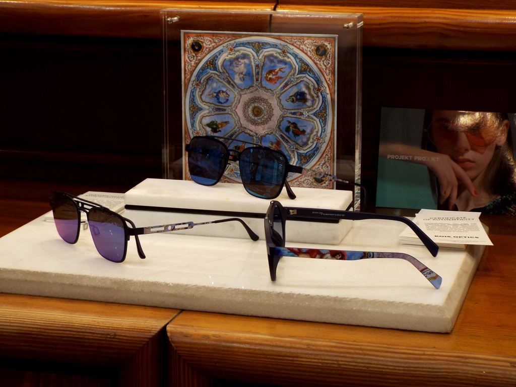 Η σχεδιάστρια Φανή Γαβαλά, από τη Motley Eyewear, επηρεασμένη από την οροφογραφία που κοσμεί το κτίριο, που στεγάζονται τα οπτικά Κοής, σε συνεργασία με την ομάδα σχεδιασμού των Kois Optics, δημιούργησε μία μοναδική σειρά χειροποίητων γυαλιών ηλίου, την Orophografia 172, της οποίας κάθε ζευγάρι είναι ξεχωριστό και φυσικά, ζωγραφισμένο στο χέρι.