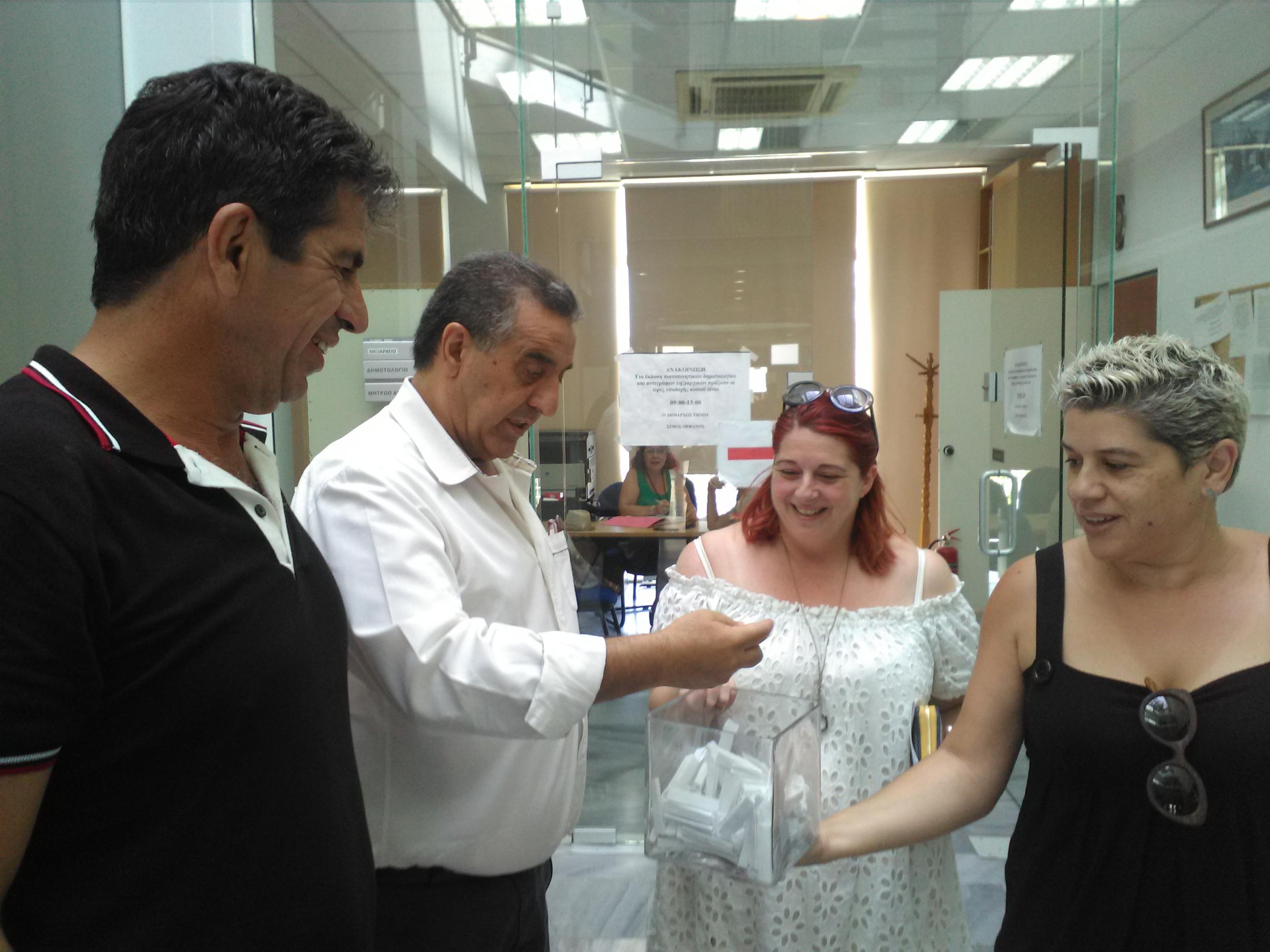Η κλήρωση έγινε το πρωί της Παρασκευής 18 Αυγούστου 2017 στο Δημαρχείο Τήνου και την κλήρωση έκανε ο Δήμαρχος Τήνου κ. Σίμος Ορφανός και η Αντιδήμαρχος Τήνου κ. Αναστασία Δεληγιάννη – Άσπρου. Οι νικητές είναι οι εξής (κατά σειρά κλήρωσης):