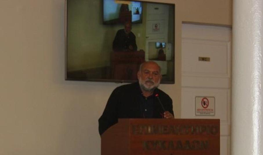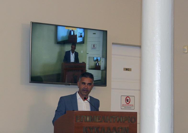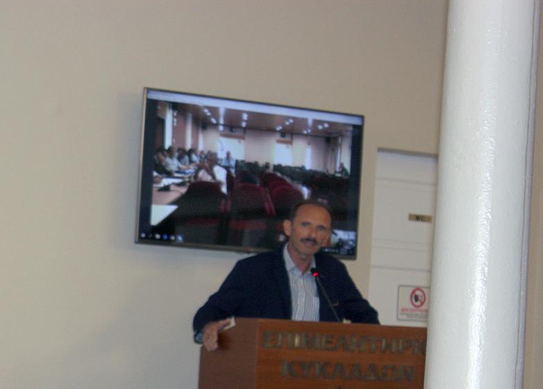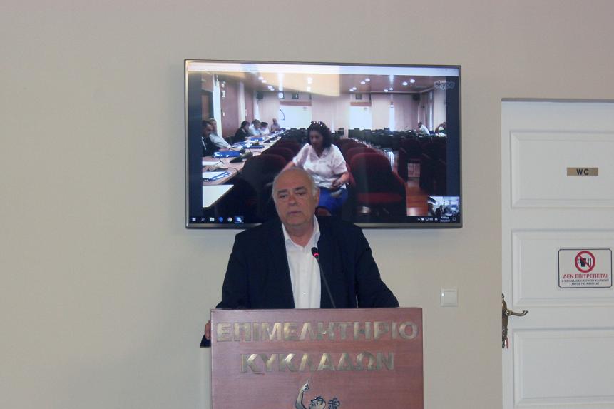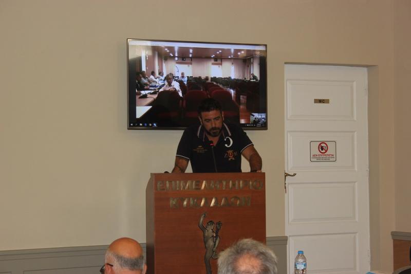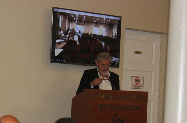 Ο πρόεδρος του Επιμελητηρίου Κυκλάδων, Γιάννης Ρούσσος, αναφέρθηκε στη διαρκή ενασχόληση του Επιμελητηρίου με το θέμα του Νεωρίου, τόσο γιατί η επιχείρηση είναι μέλος του Επιμελητηρίου, στο οποίο έχει οφειλή περί το 1 εκ. ευρώ, όσο και για τις οφειλές που διεκδικούν οι εργαζόμενοι, γεγονός που επηρεάζει την τοπική οικονομία.