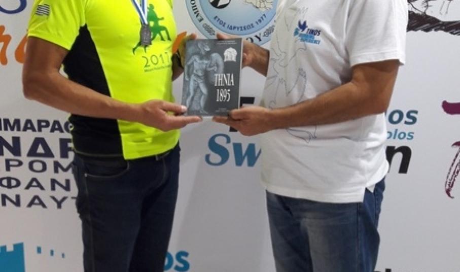 Σημαντική για το Σύλλογό μας και για το TINOS RUNNING EXPERIENCE ήταν η γνωριμία με τον πρόεδρο της διοργάνωσης PSILORITIS RACE κ. Ανδρέα Ανδρουλιδάκη. Οι διεθνείς αυτοί αγώνες γίνονται εδώ και 9 χρόνια στην Κρήτη με ιδιαίτερα μεγάλη επιτυχία. Το site των αγώνων τους έχει 260.000 επισκέπτες παγκοσμίως και στο facebook 10.000 φίλους. Οι δύο πρόεδροι συζήτησαν για τις δύο αθλητικές διοργανώσεις και για το εύρος τους. Το PSILORITIS RACE είναι ένας εδραιωμένος αγώνας με χιλιάδες συμμετοχές. Ο πρόεδρός του εντυπωσιάστηκε με την ανοδική πορεία των αγώνων μας και την προσπάθεια του Συλλόγου μας για την ανάδειξη του νησιού μας. Για το λόγο αυτό ο κ. Ανδρουλιδάκης κάλεσε τον κ. Τσιμέκη στο περίπτερο του PSILORITIS RACE και του παρέδωσε το μετάλλιο των αγώνων εις ένδειξη αναγνώρισης των προσπαθειών αυτών. Κατόπιν και ο κ. Τσιμέκης έδωσε το αναμνηστικό μετάλλιο των αγώνων μας και το βιβλίο ΤΗΝΙΑ 1895 στον κ. Ανδρουλιδάκη, αναφέροντας την ιστορία τους και εκπλήσσοντάς τον με αυτήν. Ένας μεγάλος και δυνατός σύλλογος γίνεται αρωγός του TINOS RUNNING EXPERIENCE.